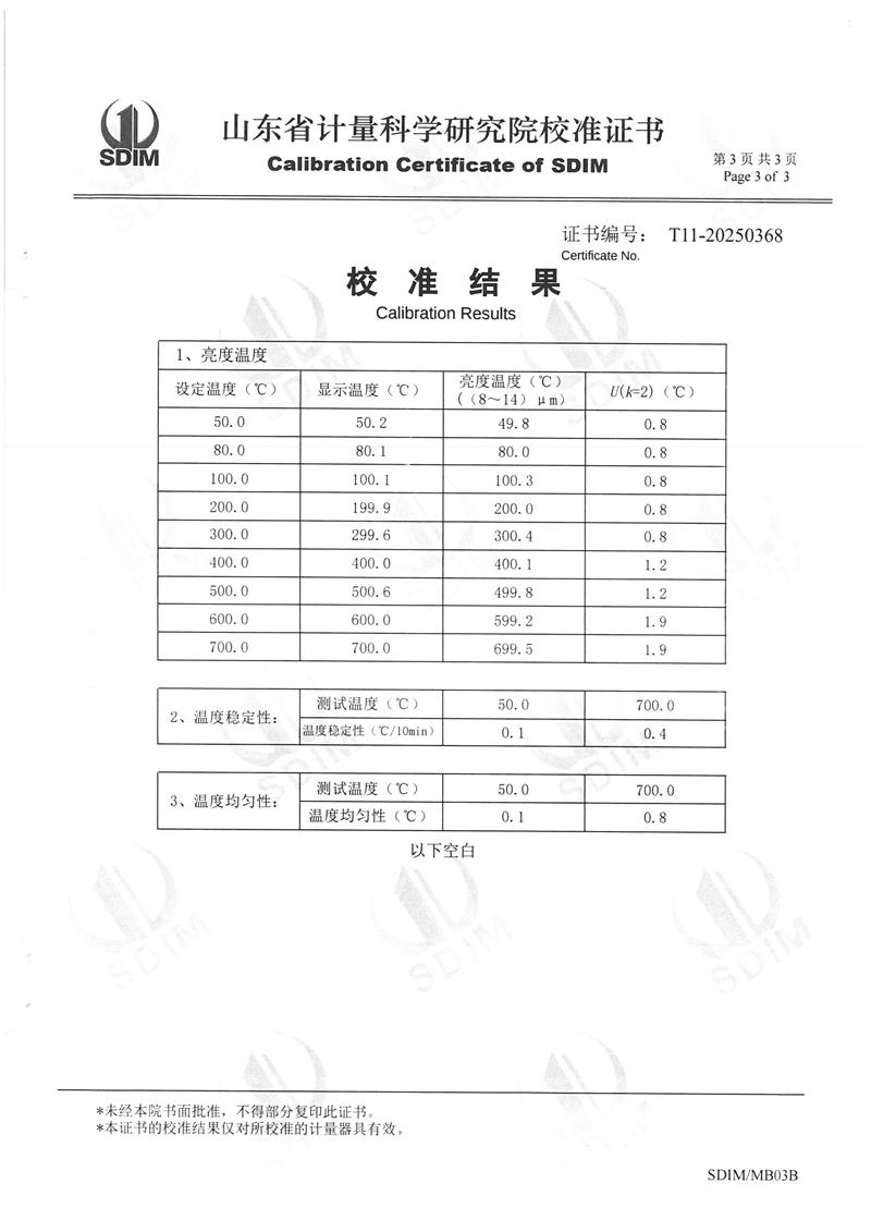 中溫黑體爐(50~700℃)校準(zhǔn)證書