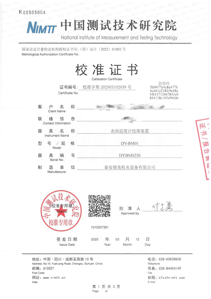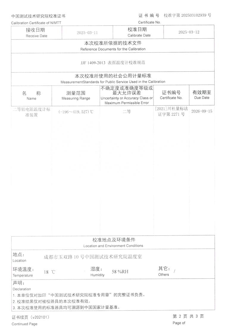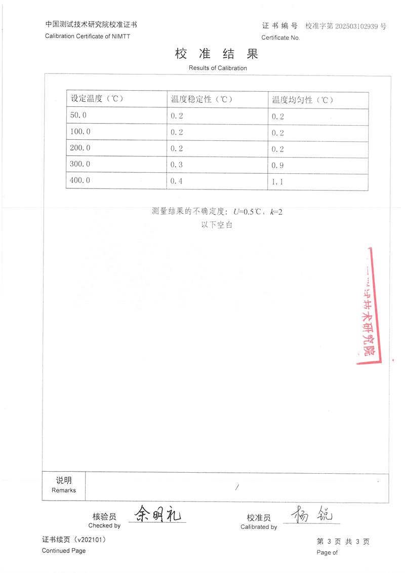 | 上一條:中溫黑體爐(50~700℃)校準(zhǔn)證書 | 下一條:便攜式干體爐(-30-150℃)校準(zhǔn)證書 |