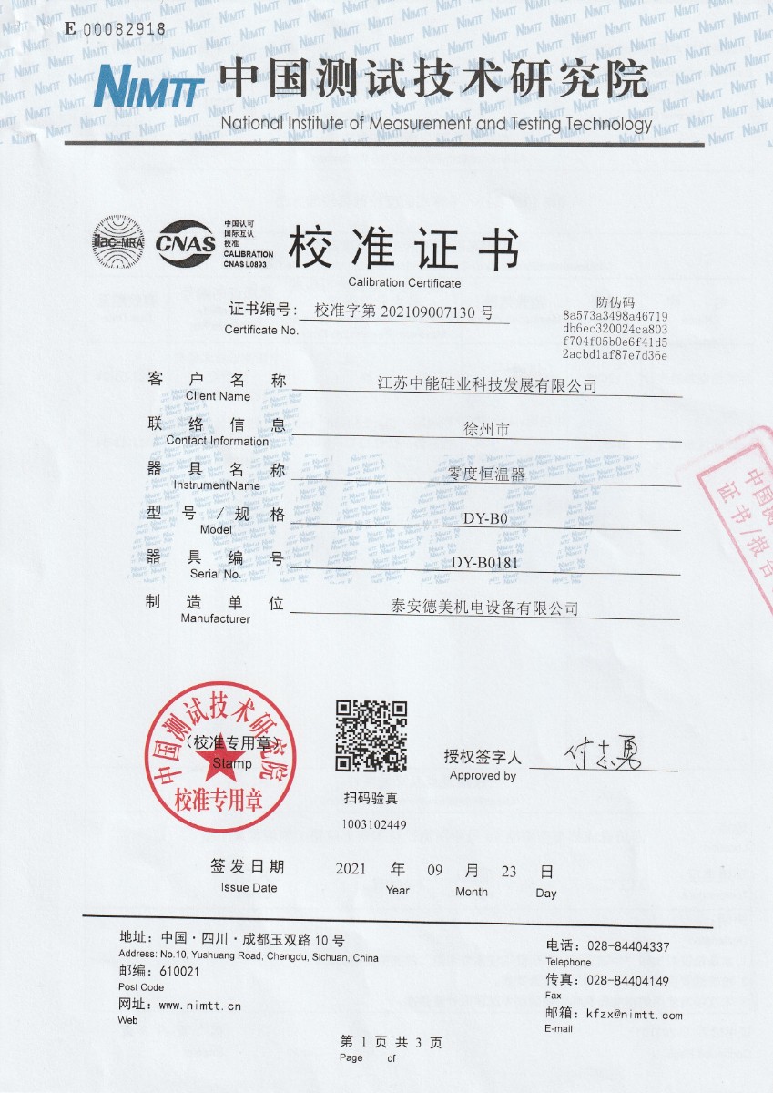 江蘇中能硅業(yè)科技發(fā)展有限公司-零度恒溫器