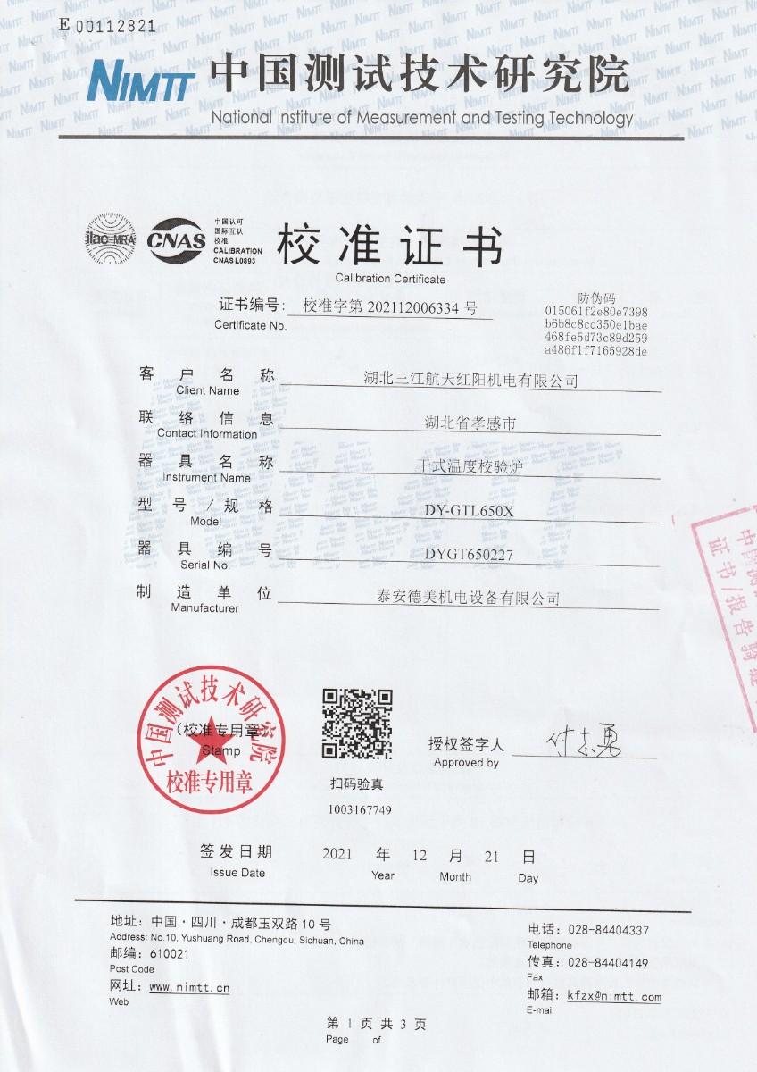 湖北三江航天紅陽機(jī)電有限公司-干式溫度校驗(yàn)爐 2021-12-27 本文被閱讀 12832 次