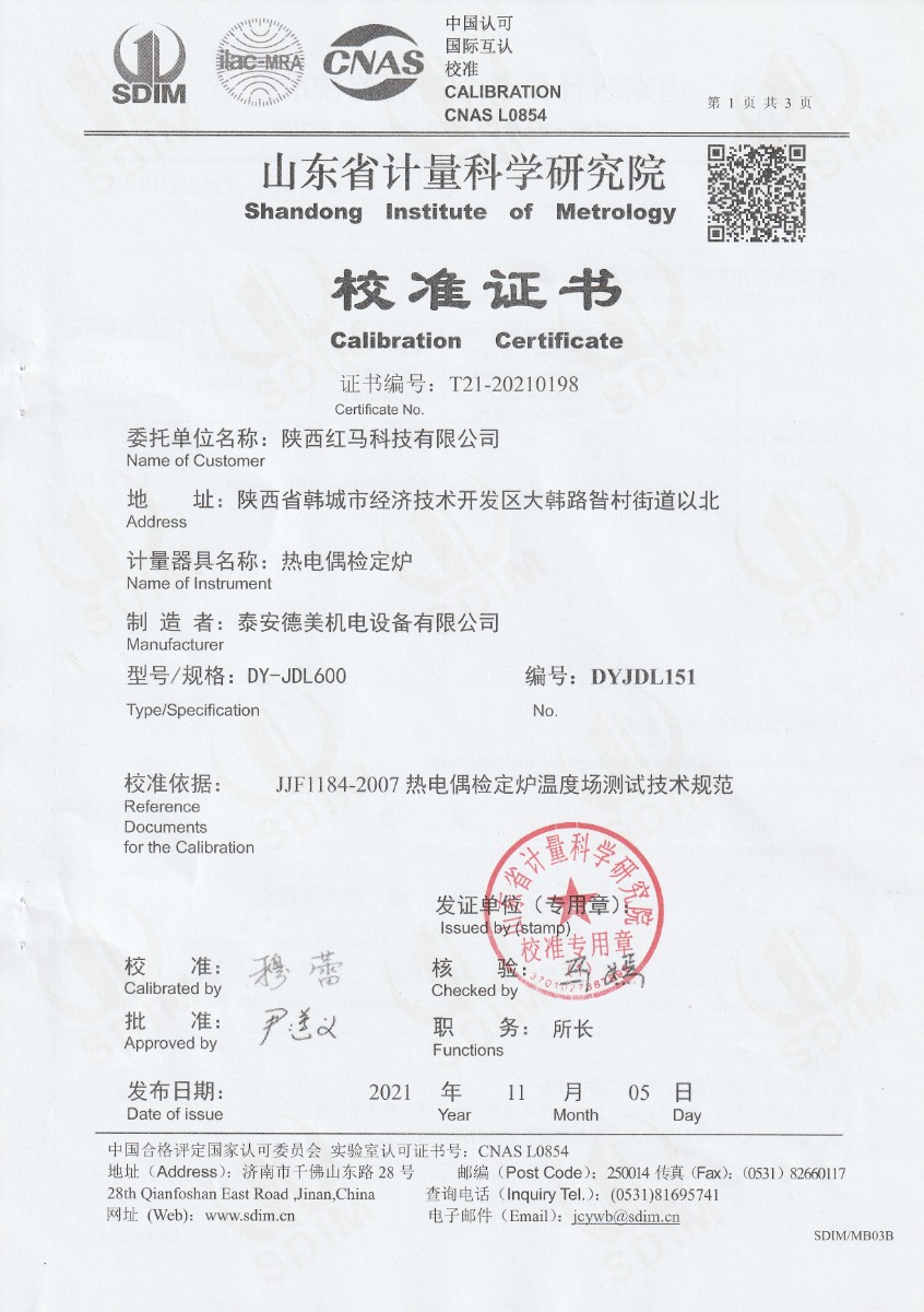 陜西紅馬有限公司-熱電偶檢定爐 2021-12-27 本文被閱讀 13929 次