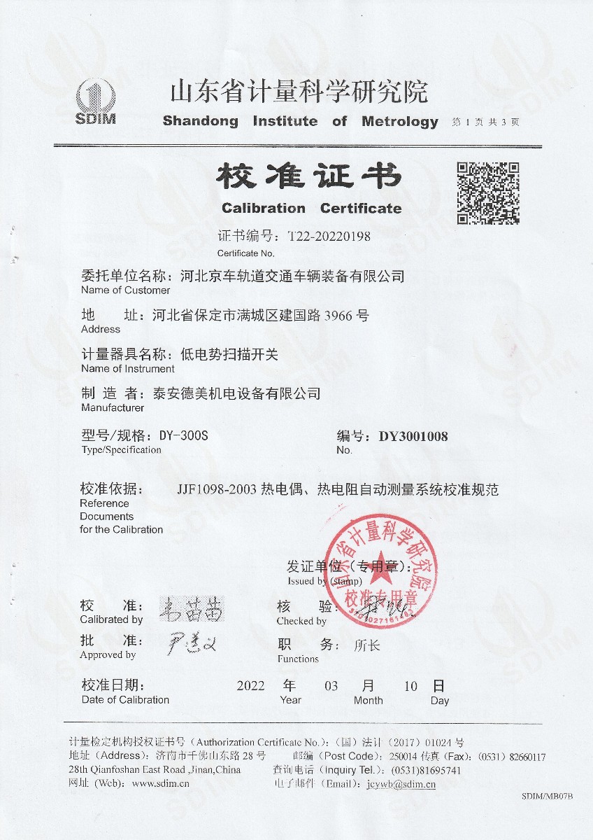 | 上一條:晶科能源(海寧)有限公司-數(shù)字壓力計(jì)校驗(yàn)儀 | 下一條:超低溫面源黑體爐(-40-80℃)校準(zhǔn)證書 |