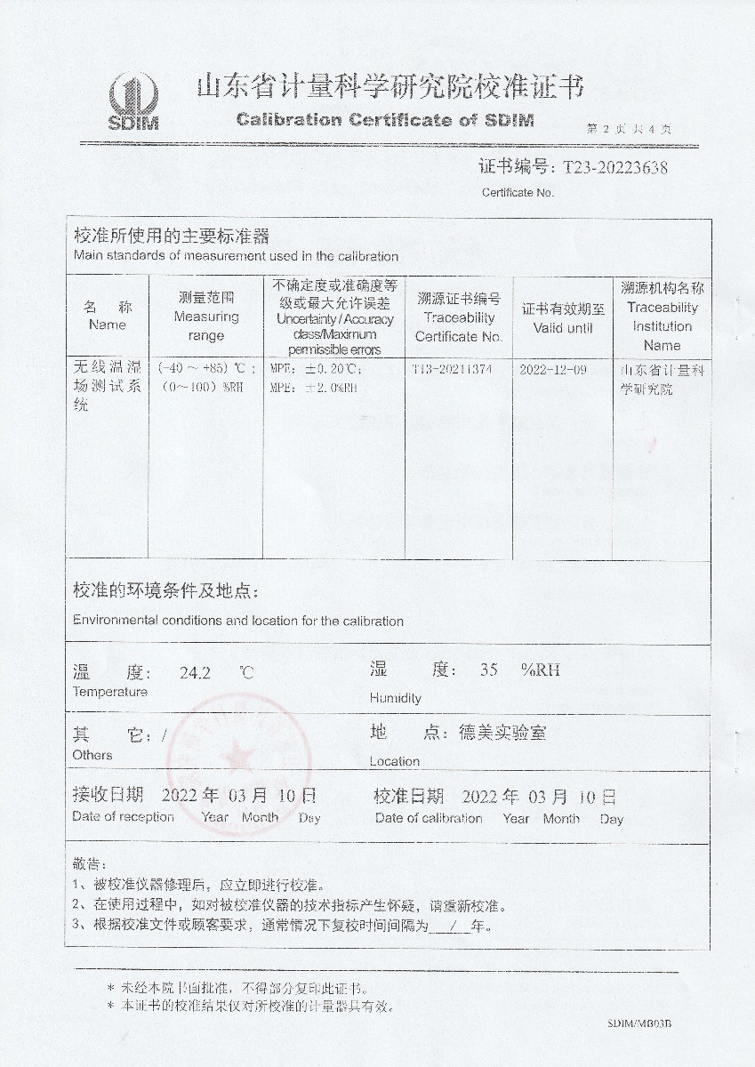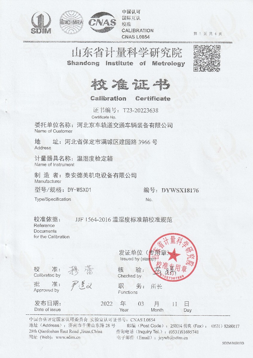 | 上一條:河北京車軌道交通車輛裝備有限公司-低電勢掃描開關(guān) | 下一條:超低溫面源黑體爐(-40-80℃)校準證書 |