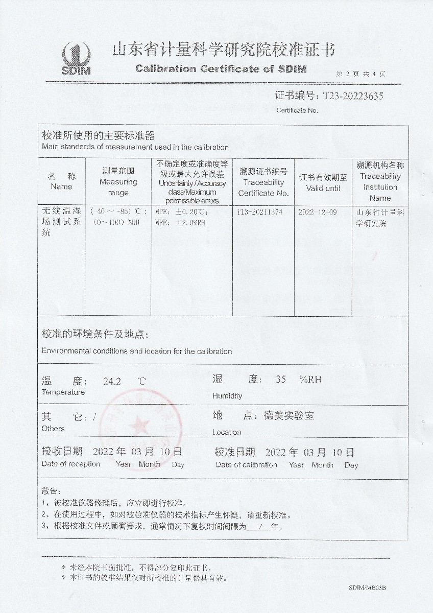 | 上一條:河北京車軌道交通車輛裝備有限公司-溫濕度檢定箱 | 下一條:超低溫面源黑體爐(-40-80℃)校準(zhǔn)證書(shū) |