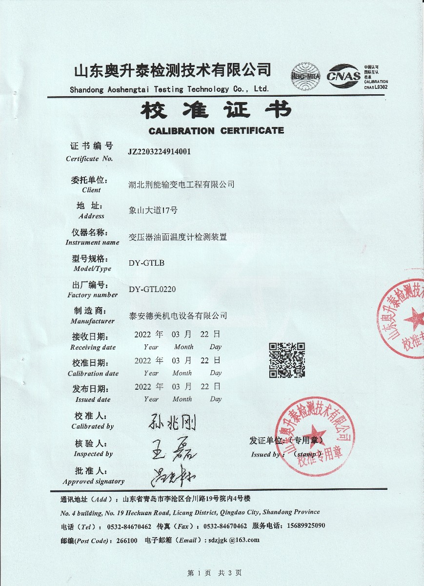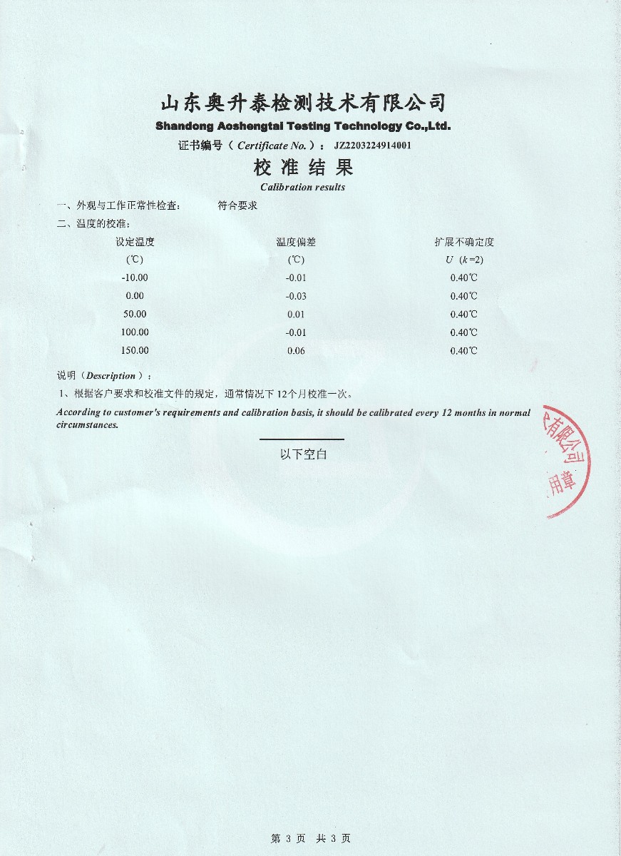 | 上一條:晶科能源(海寧)有限公司-溫濕度檢定箱 | 下一條:超低溫面源黑體爐(-40-80℃)校準(zhǔn)證書 |