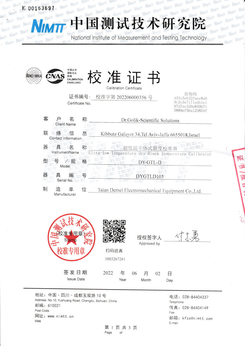 以色列-超低溫干體爐 2022-6-7 本文被閱讀 13854 次