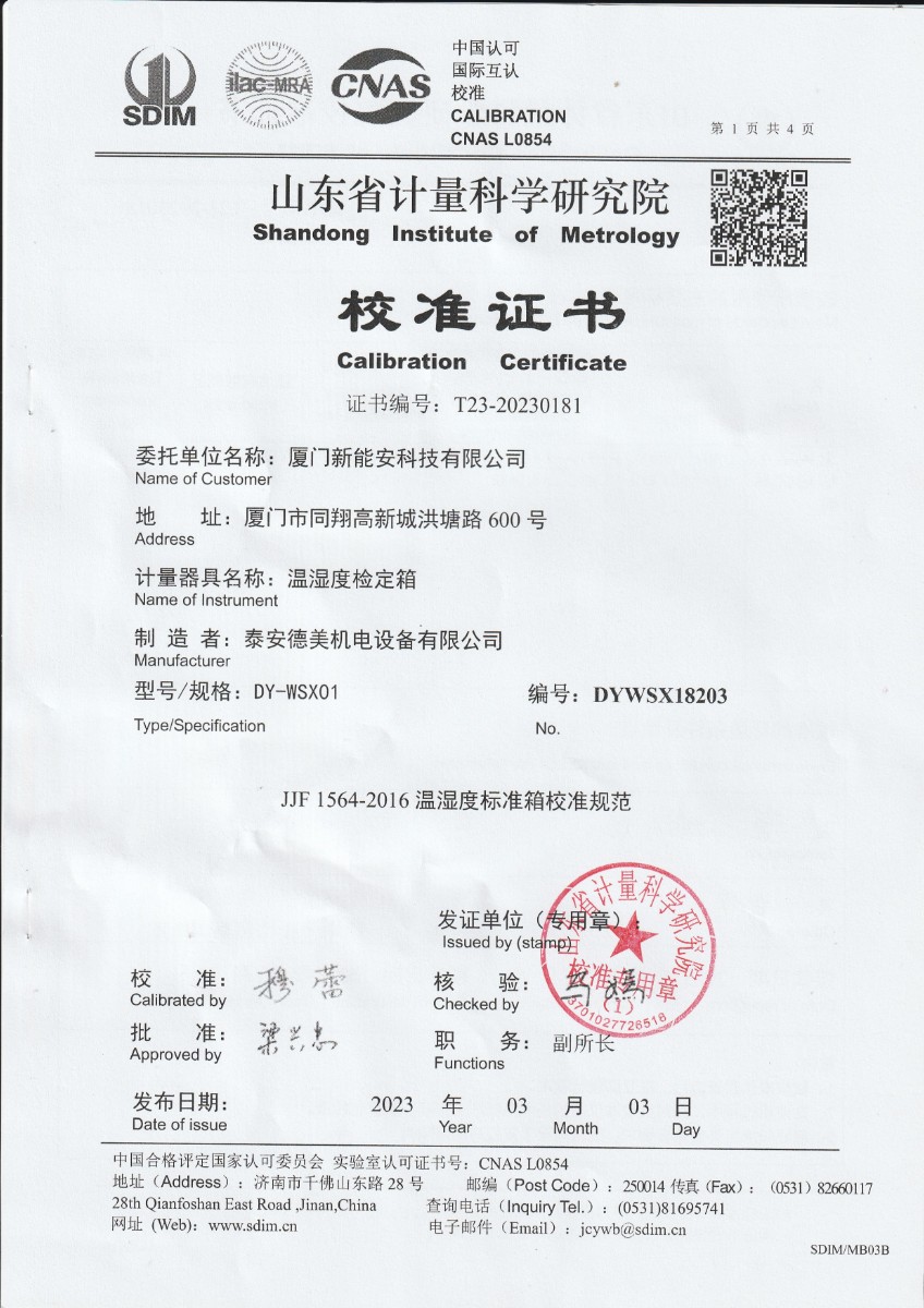 | 上一條:西安楊森制藥有限公司 溫濕度檢定箱 校準(zhǔn)證書 | 下一條:超低溫面源黑體爐(-40-80℃)校準(zhǔn)證書 |