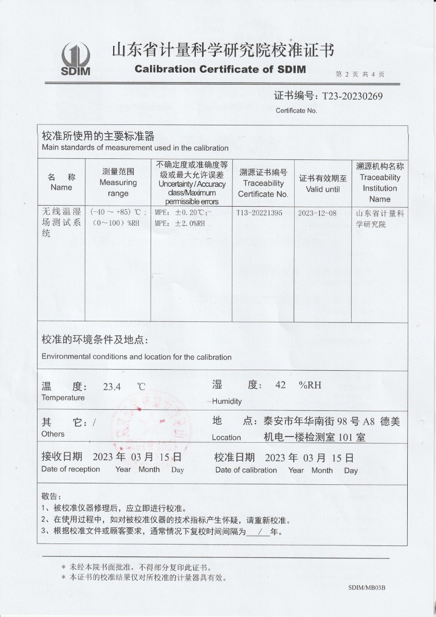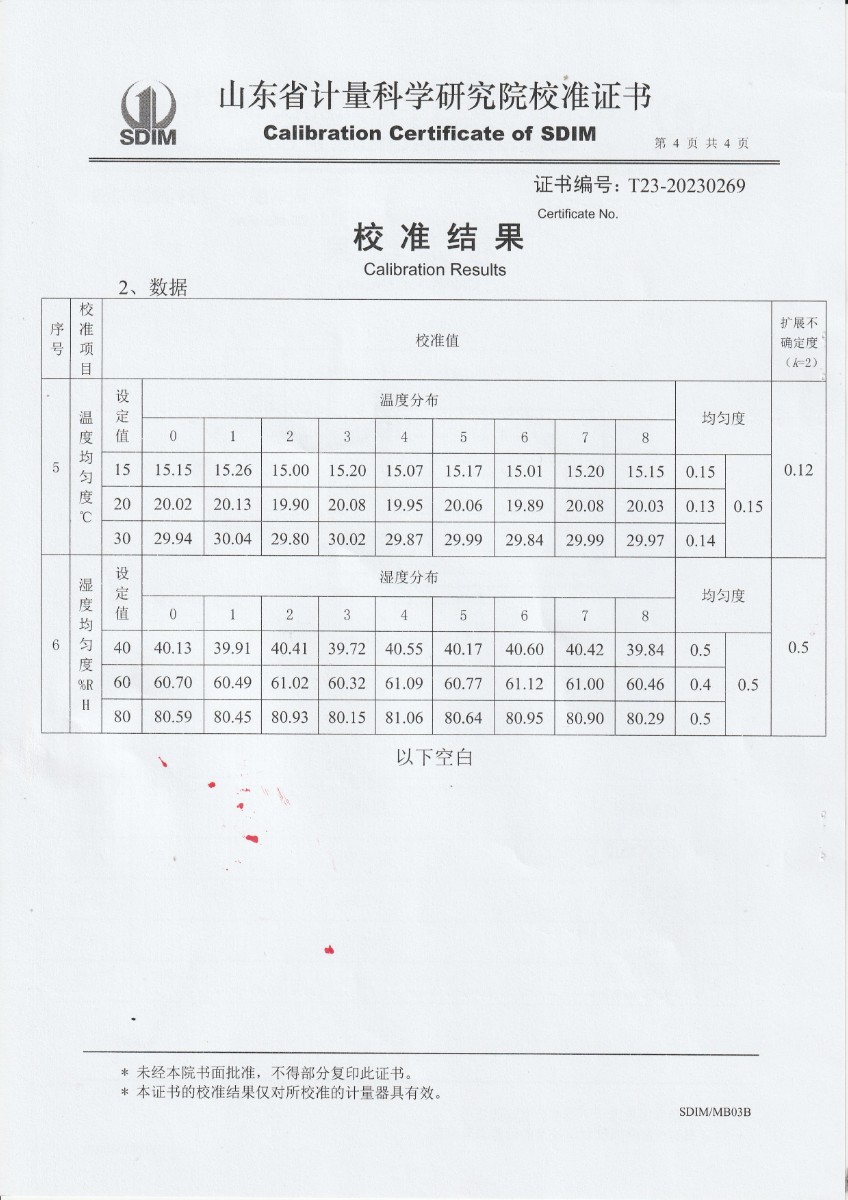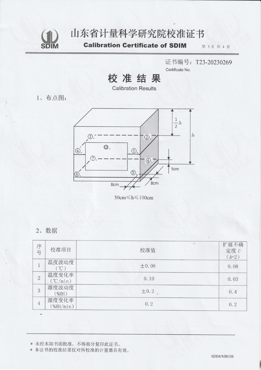 | 上一條:方圓檢測認證有限公司浙江金華分公司 溫濕度檢定箱校準證書 | 下一條:超低溫面源黑體爐(-40-80℃)校準證書 |