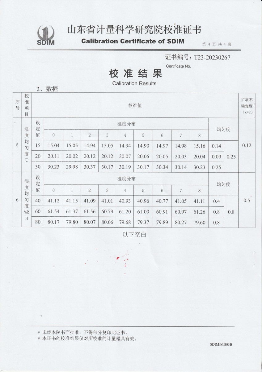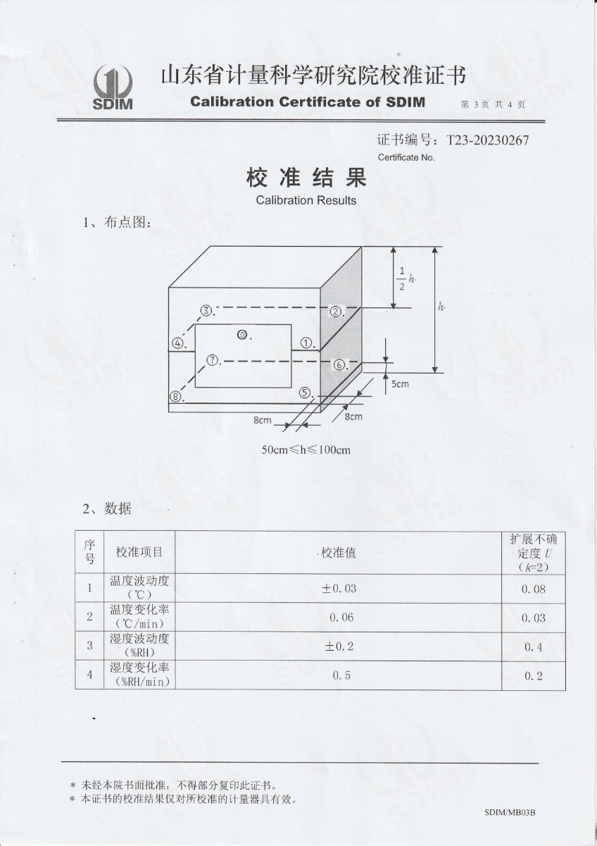 | 上一條:揚州晨光計量檢測有限公司 溫濕度檢定箱 校準(zhǔn)證書 | 下一條:超低溫面源黑體爐(-40-80℃)校準(zhǔn)證書 |