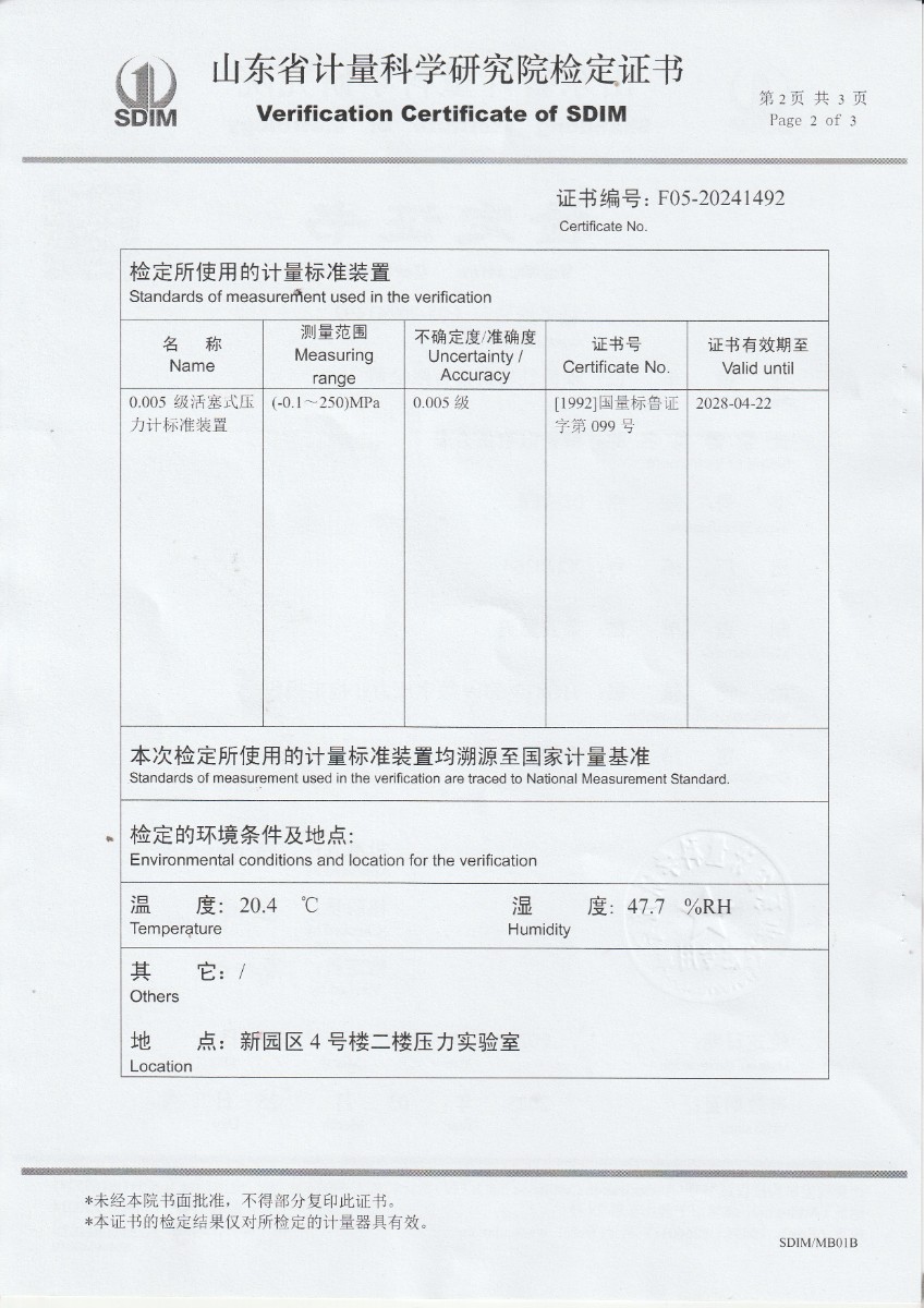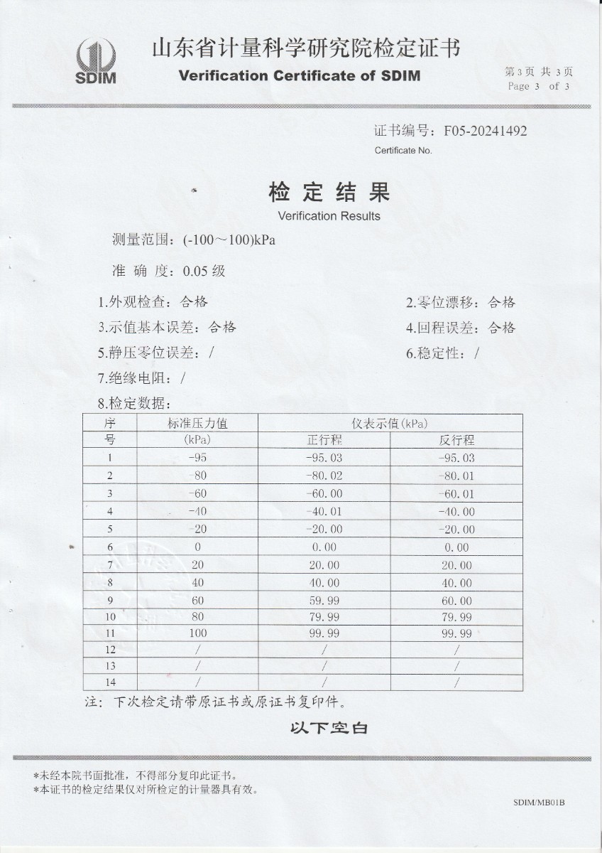 數(shù)字壓力表檢定證書 2024-4-11 本文被閱讀 6258 次