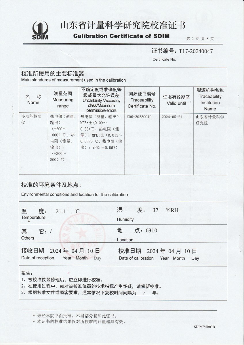 溫度校驗儀校準證書 2024-4-12 本文被閱讀 6291 次