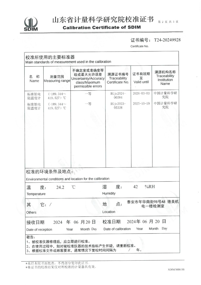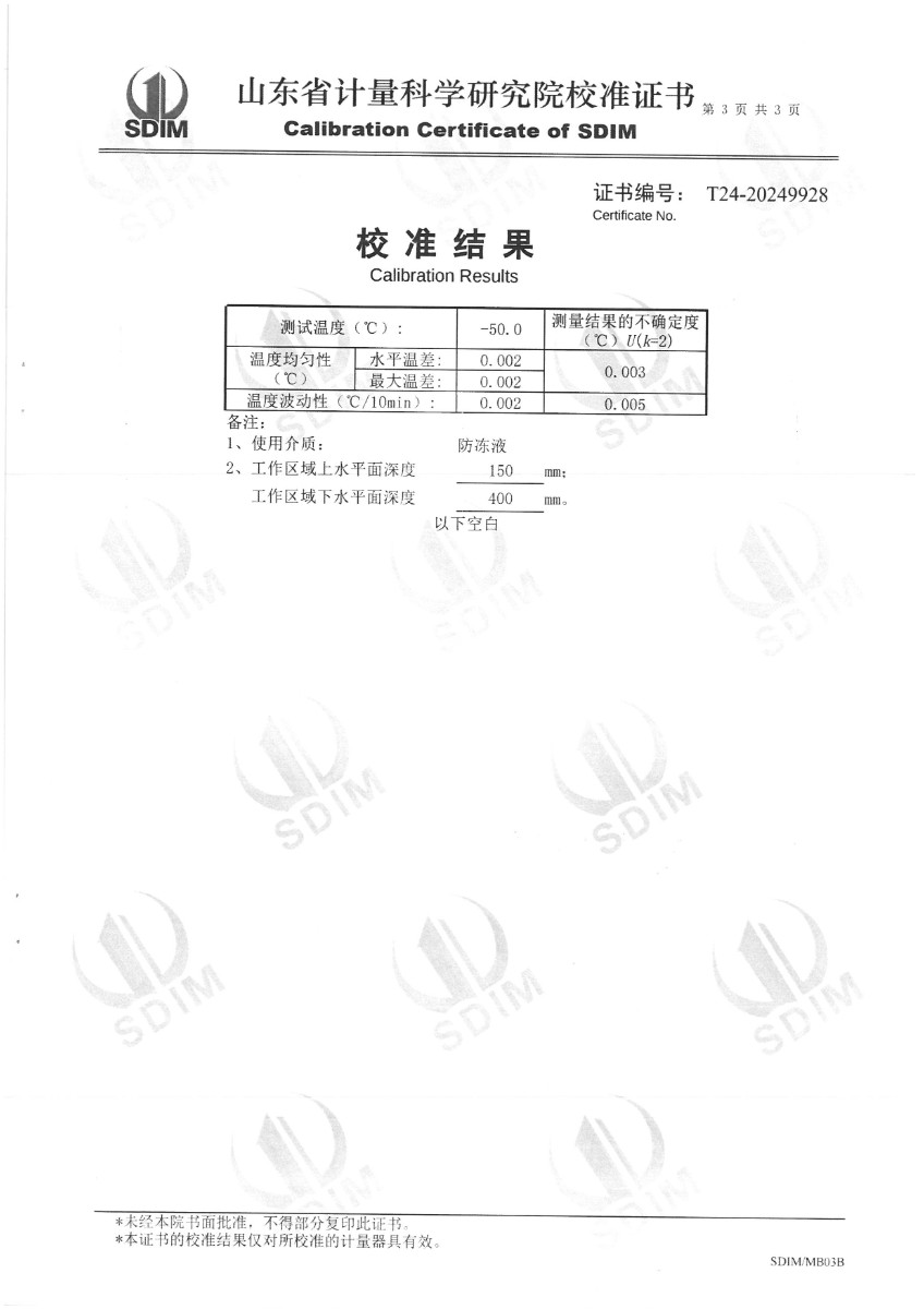 | 上一條:高精度恒溫油槽(90~300℃)校準(zhǔn)證書 | 下一條:便攜式溫濕度檢定箱(-10-60℃)校準(zhǔn)證書 |