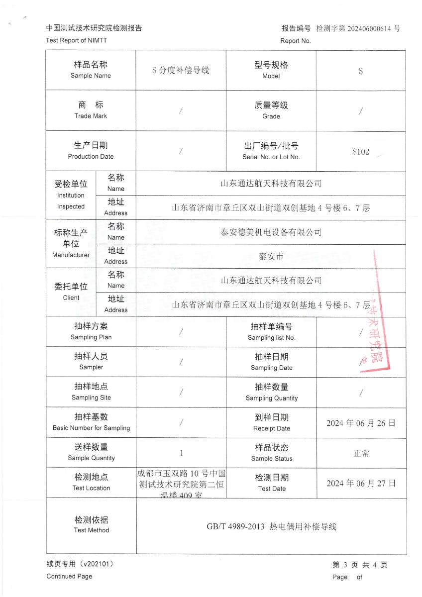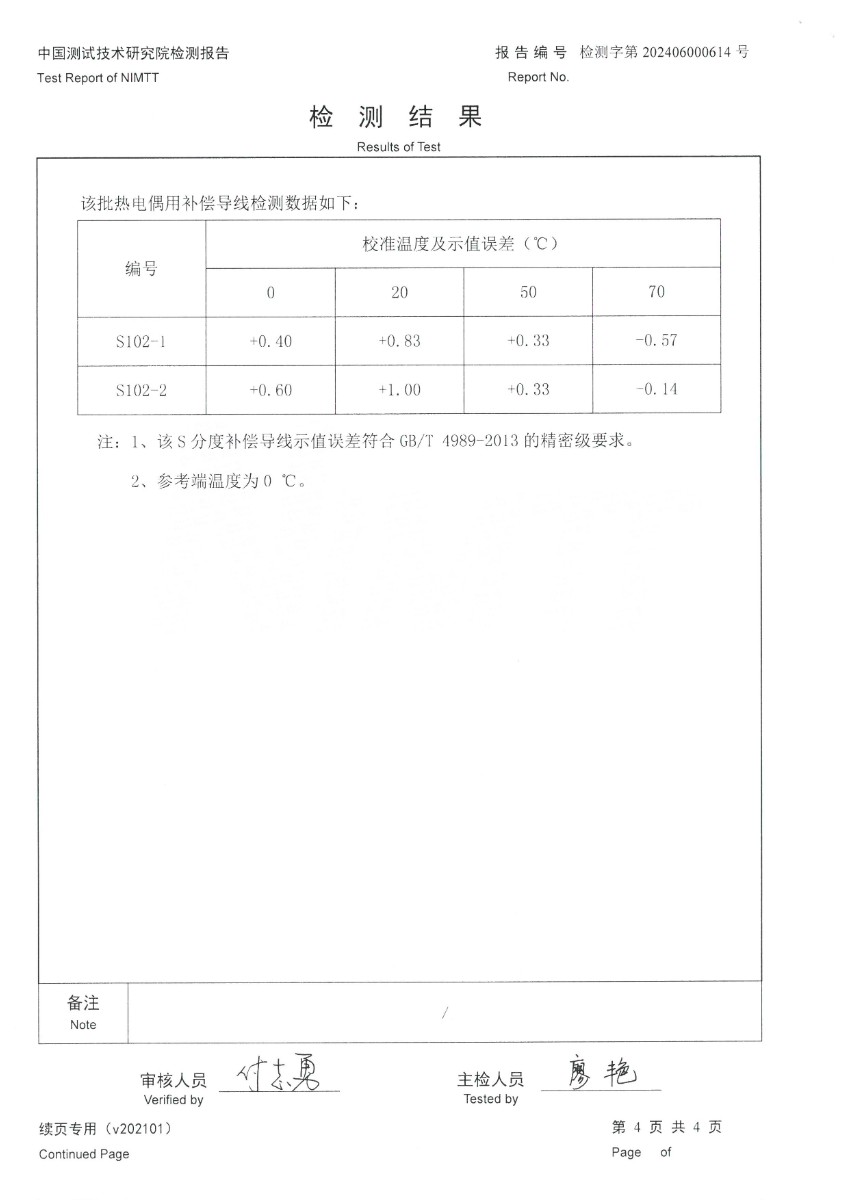 補償導(dǎo)線S分度檢測報告 2024-6-29 本文被閱讀 5867 次