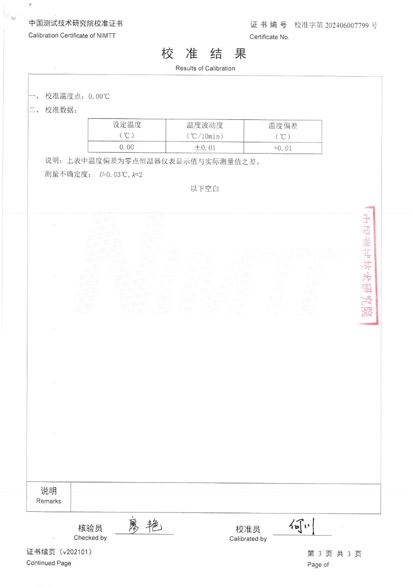 零點恒溫器校準證書 2024-7-1 本文被閱讀 5882 次