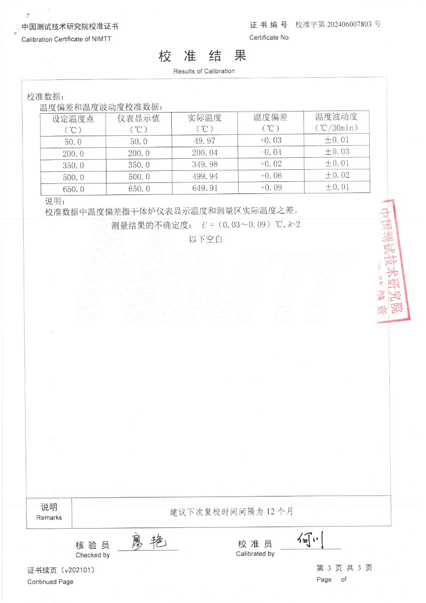 | 上一條:中溫干體爐(50~450℃)校準(zhǔn)證書 | 下一條:便攜式干體爐(-30-150℃)校準(zhǔn)證書 |