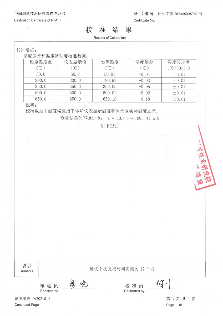 | 上一條:中溫干體爐295(50~650℃)校準(zhǔn)證書(shū) | 下一條:便攜式干體爐(-30-150℃)校準(zhǔn)證書(shū) |