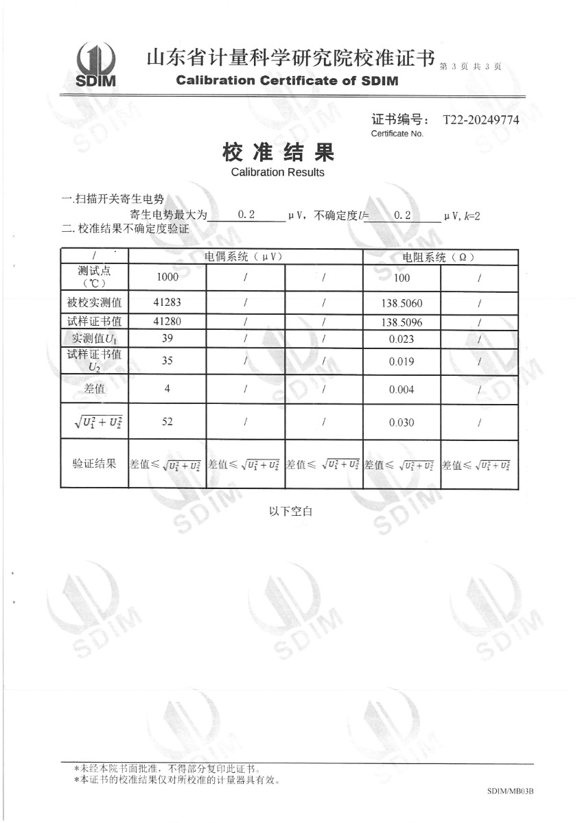 | 上一條:中溫干體爐296(50~650℃)校準(zhǔn)證書 | 下一條:便攜式干體爐(-30-150℃)校準(zhǔn)證書 |