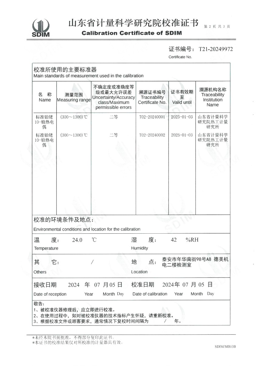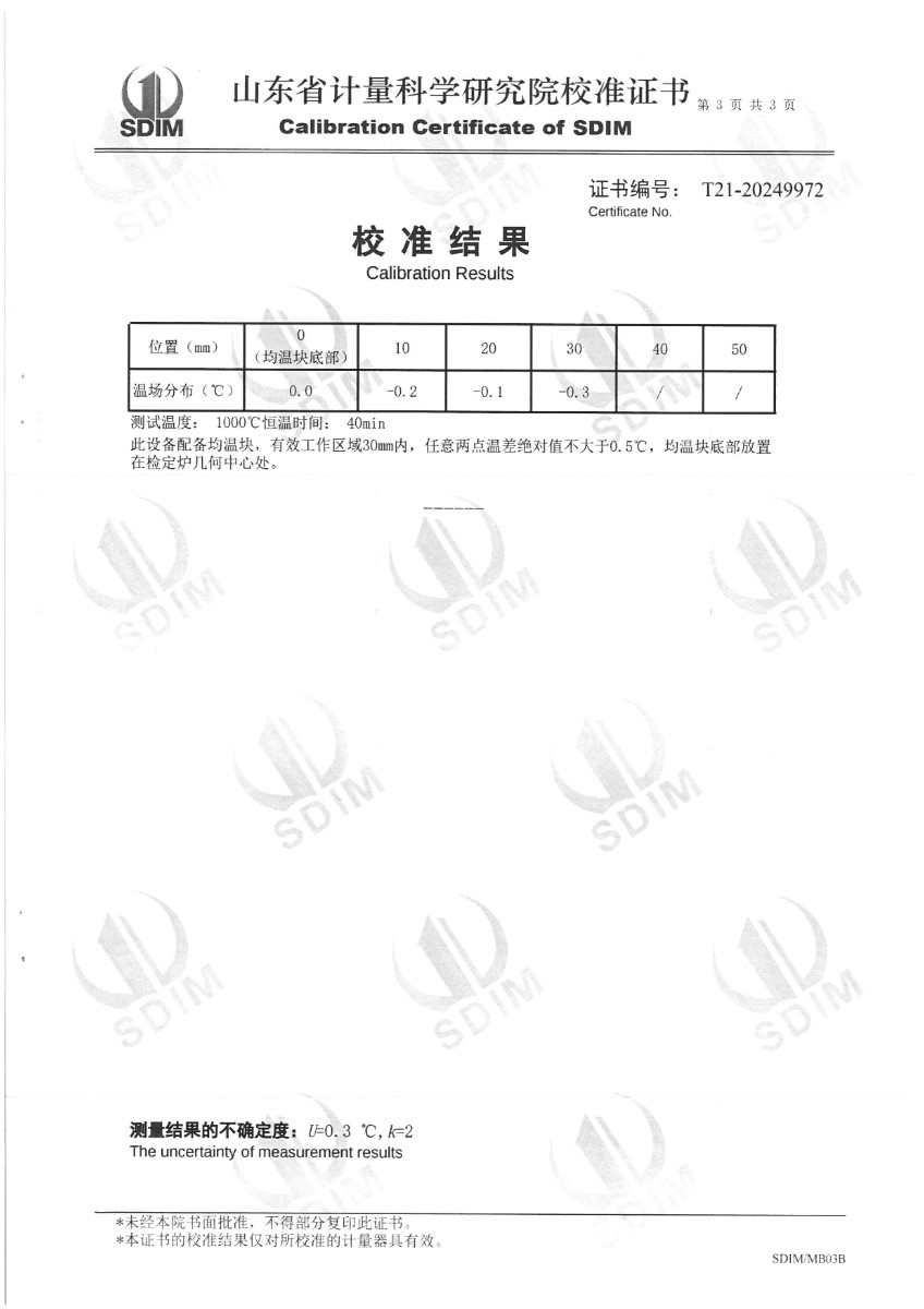 熱電偶檢定爐(300~1200℃)校準證書 2024-7-11 本文被閱讀 6427 次