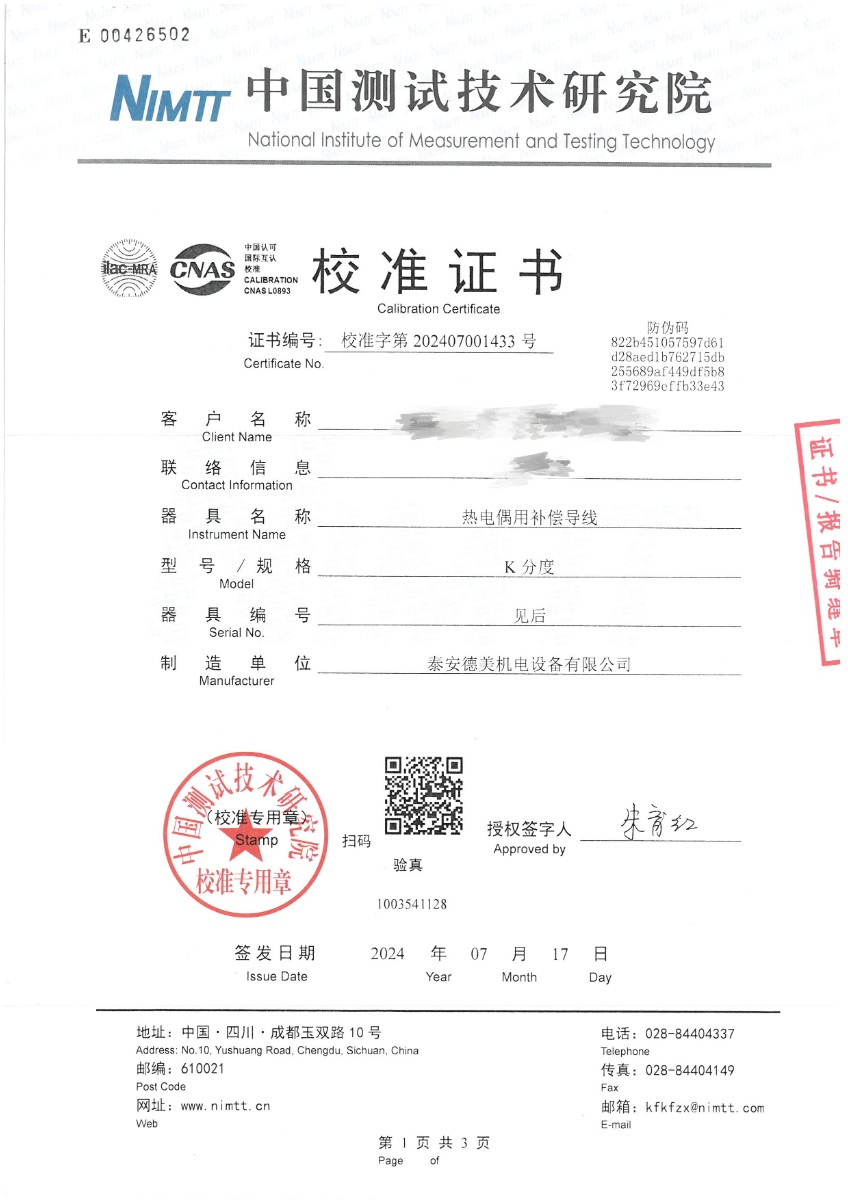 | 上一條:零點(diǎn)恒溫器校準(zhǔn)證書(shū) | 下一條:便攜式干體爐(-30-150℃)校準(zhǔn)證書(shū) |
