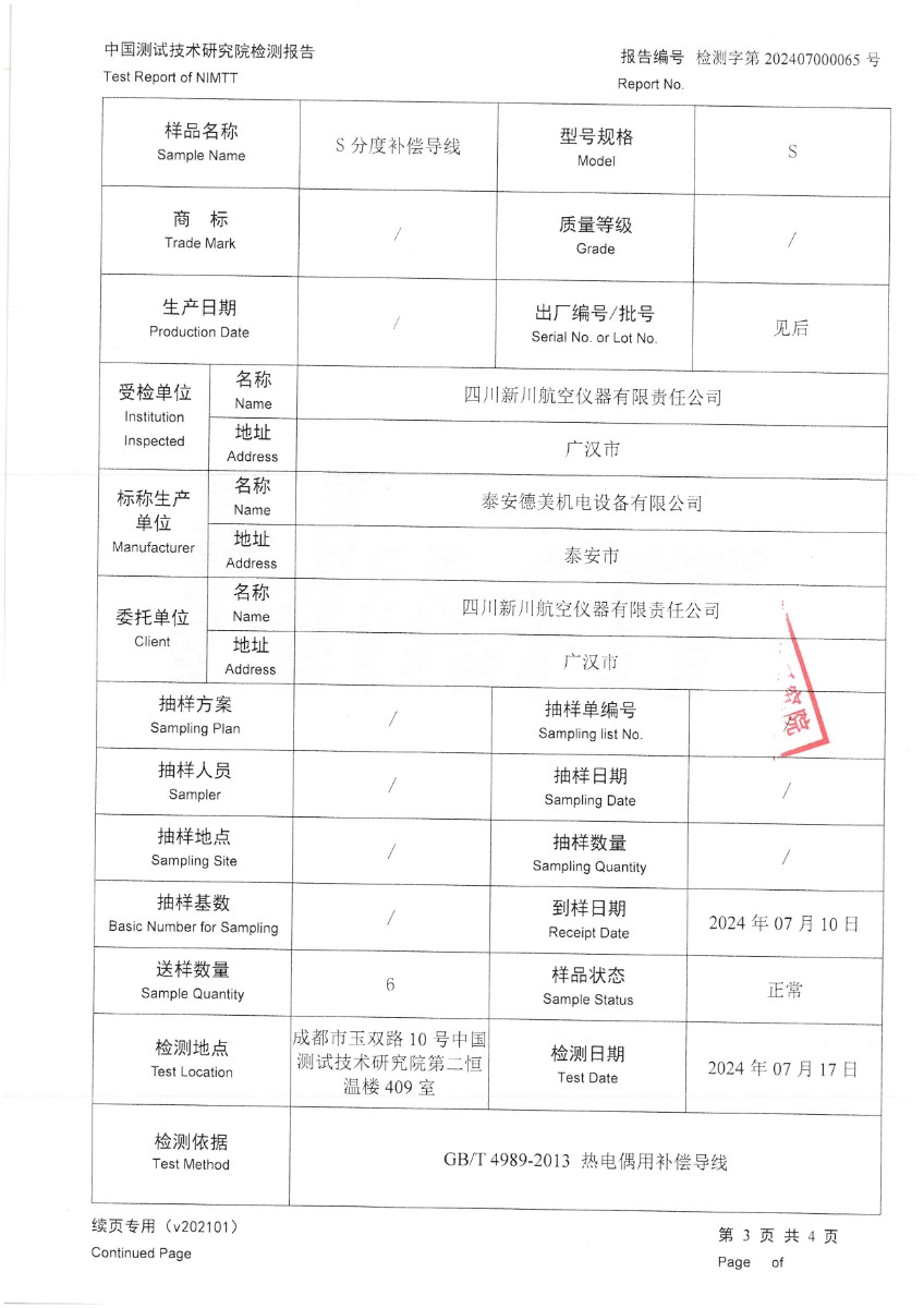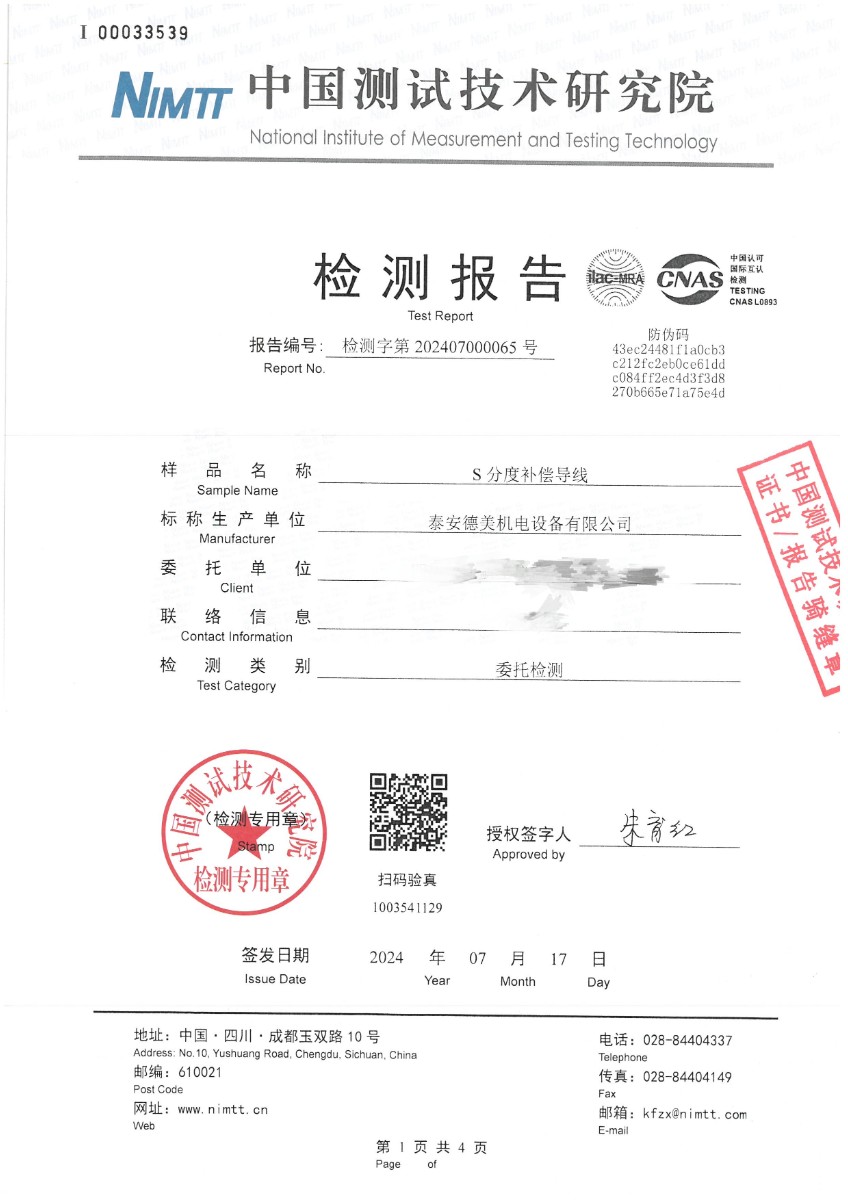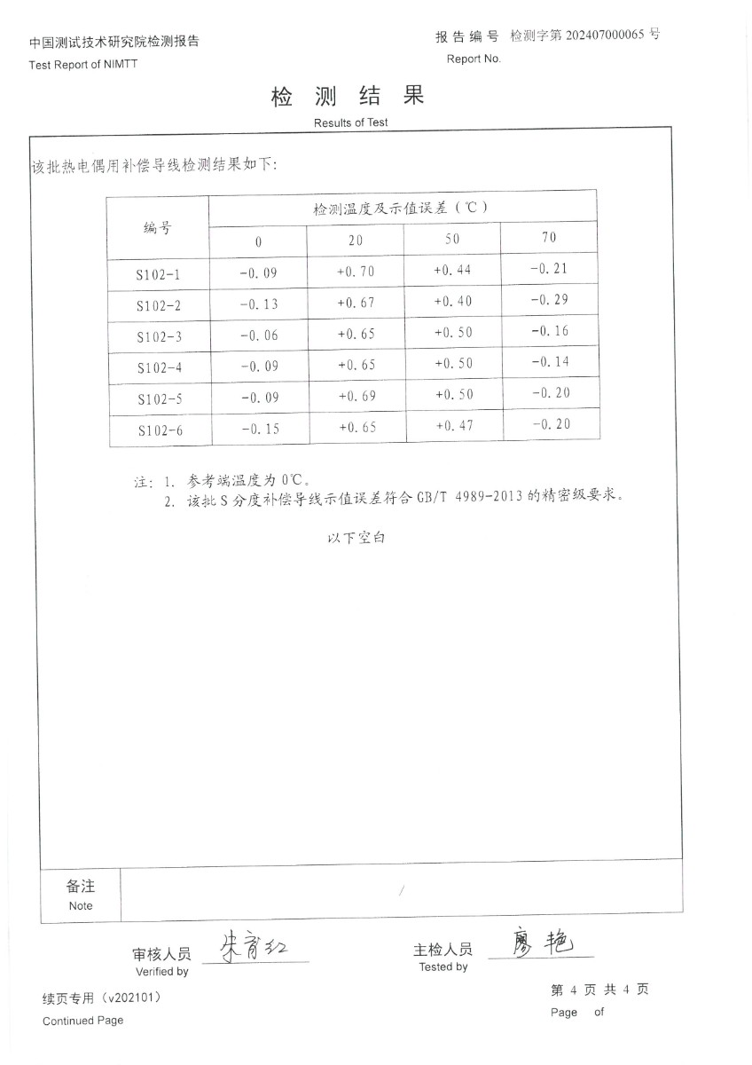 | 上一條:熱電偶用補償導(dǎo)線K分度校準(zhǔn)證書 | 下一條:便攜式干體爐(-30-150℃)校準(zhǔn)證書 |
