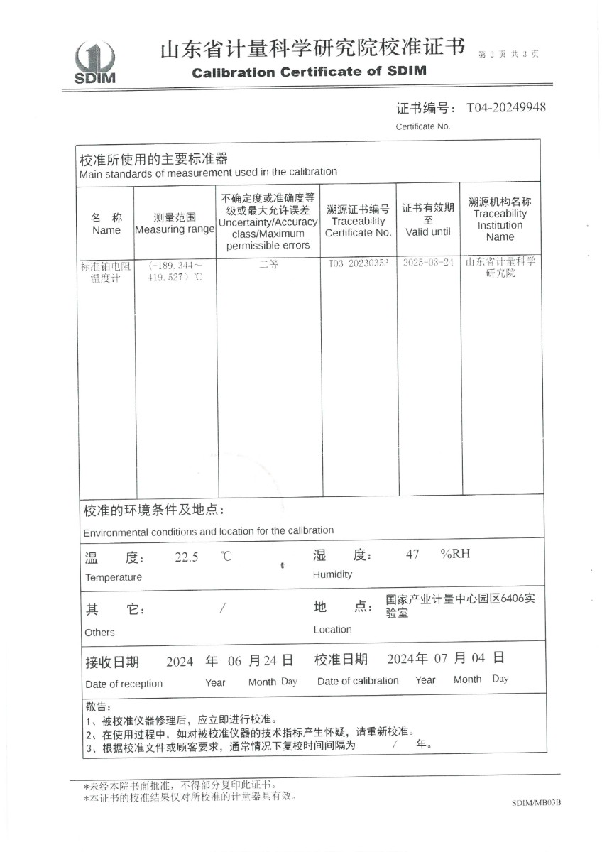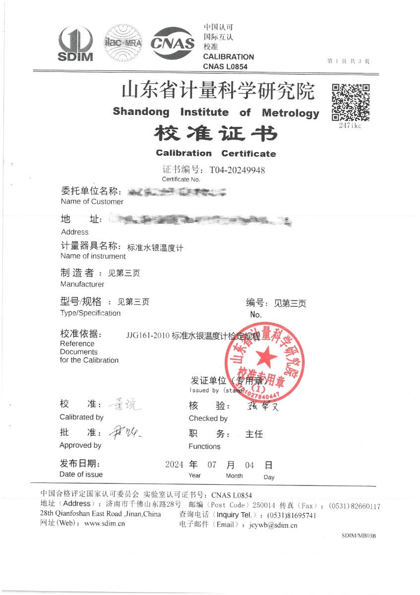 | 上一條:溫濕度檢定箱(-20~70℃)校準(zhǔn)證書(shū) | 下一條:便攜式干體爐(-30-150℃)校準(zhǔn)證書(shū) |