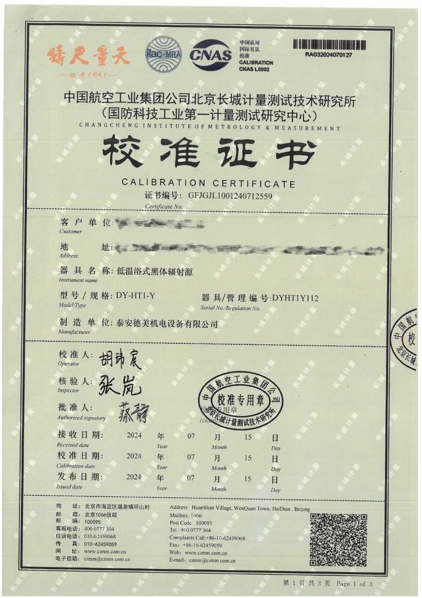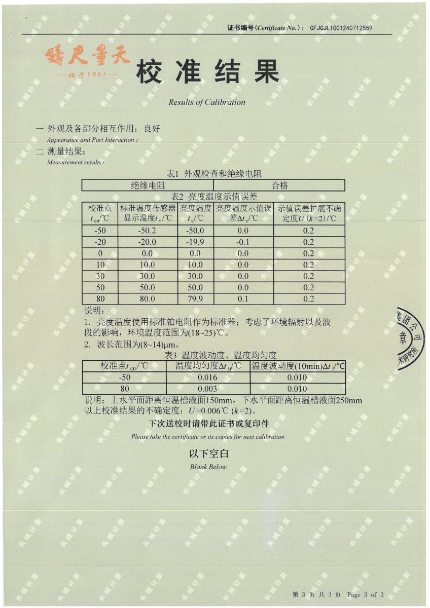 | 上一條:標(biāo)準(zhǔn)水銀溫度計(jì)校準(zhǔn)證書 | 下一條:便攜式干體爐(-30-150℃)校準(zhǔn)證書 |