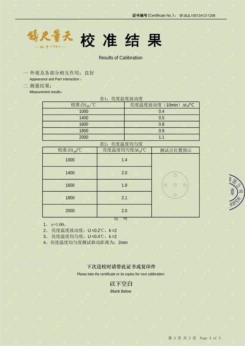 | 上一條:DY-HT3000超高溫黑體輻射源(600℃~3000℃) | 下一條:便攜式干體爐(-30-150℃)校準(zhǔn)證書 |