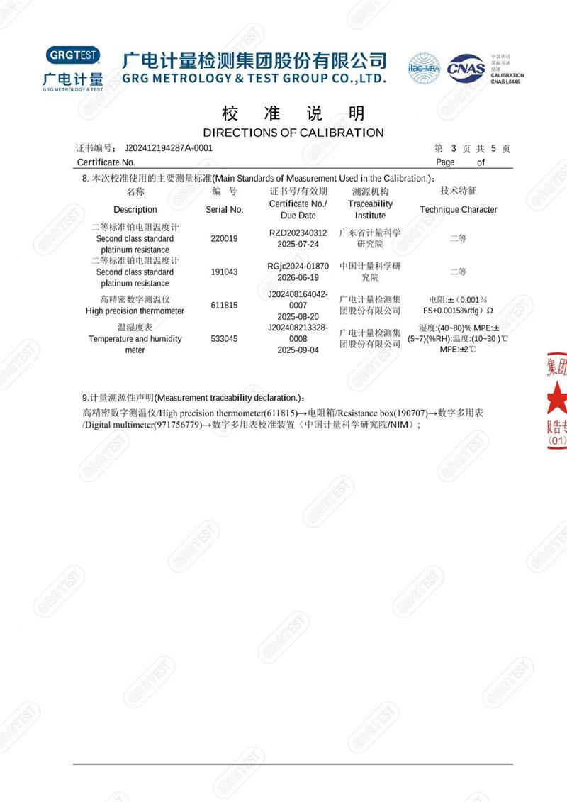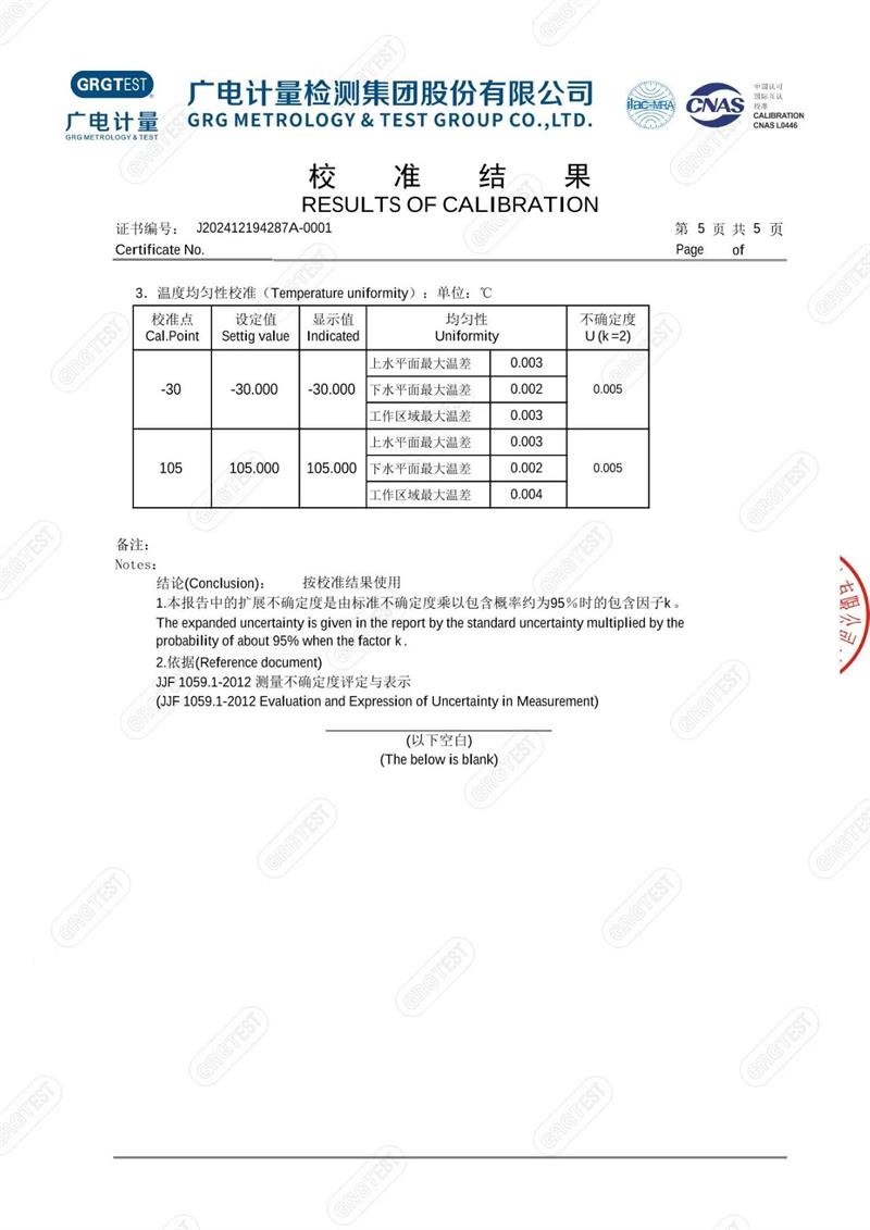 | 上一條:溫濕度巡檢儀測(cè)試系統(tǒng)校準(zhǔn)證書 | 下一條:便攜式干體爐(-30-150℃)校準(zhǔn)證書 |