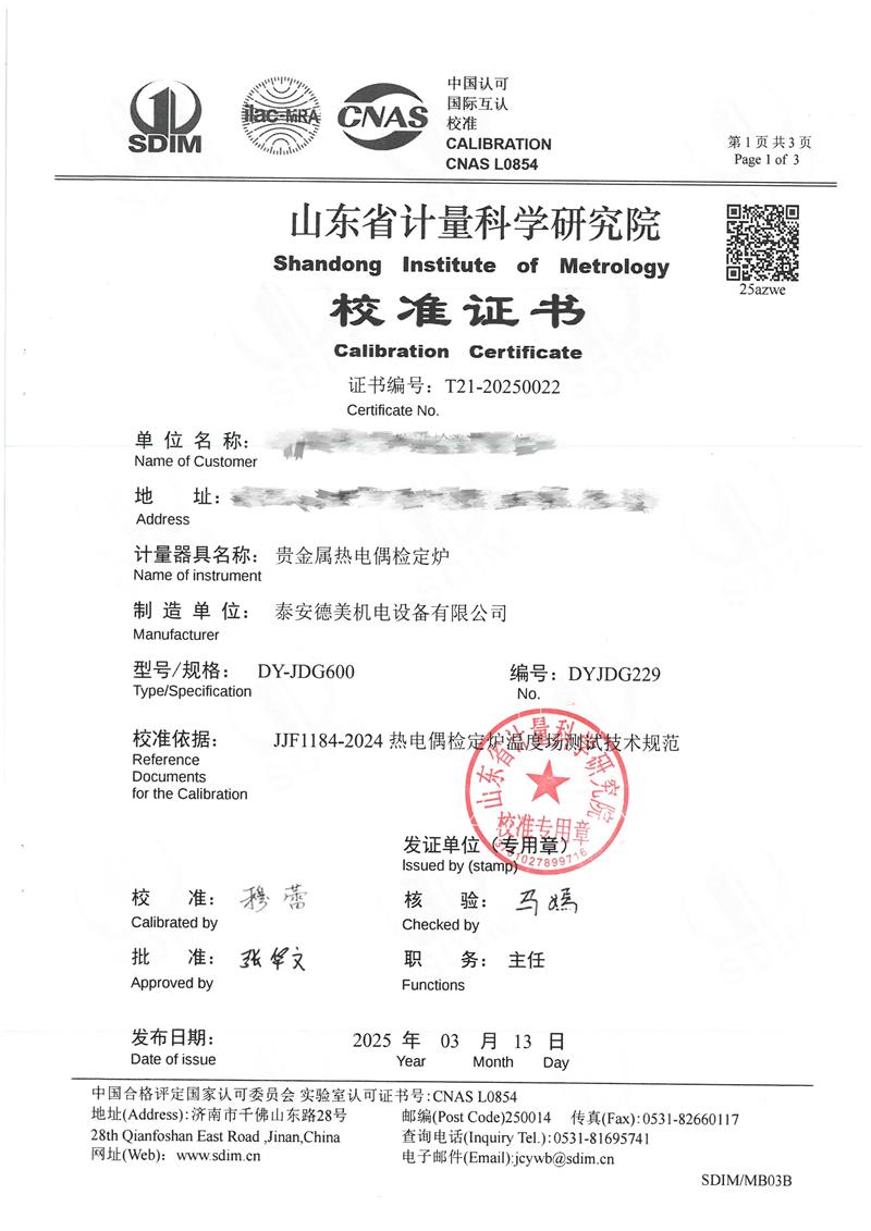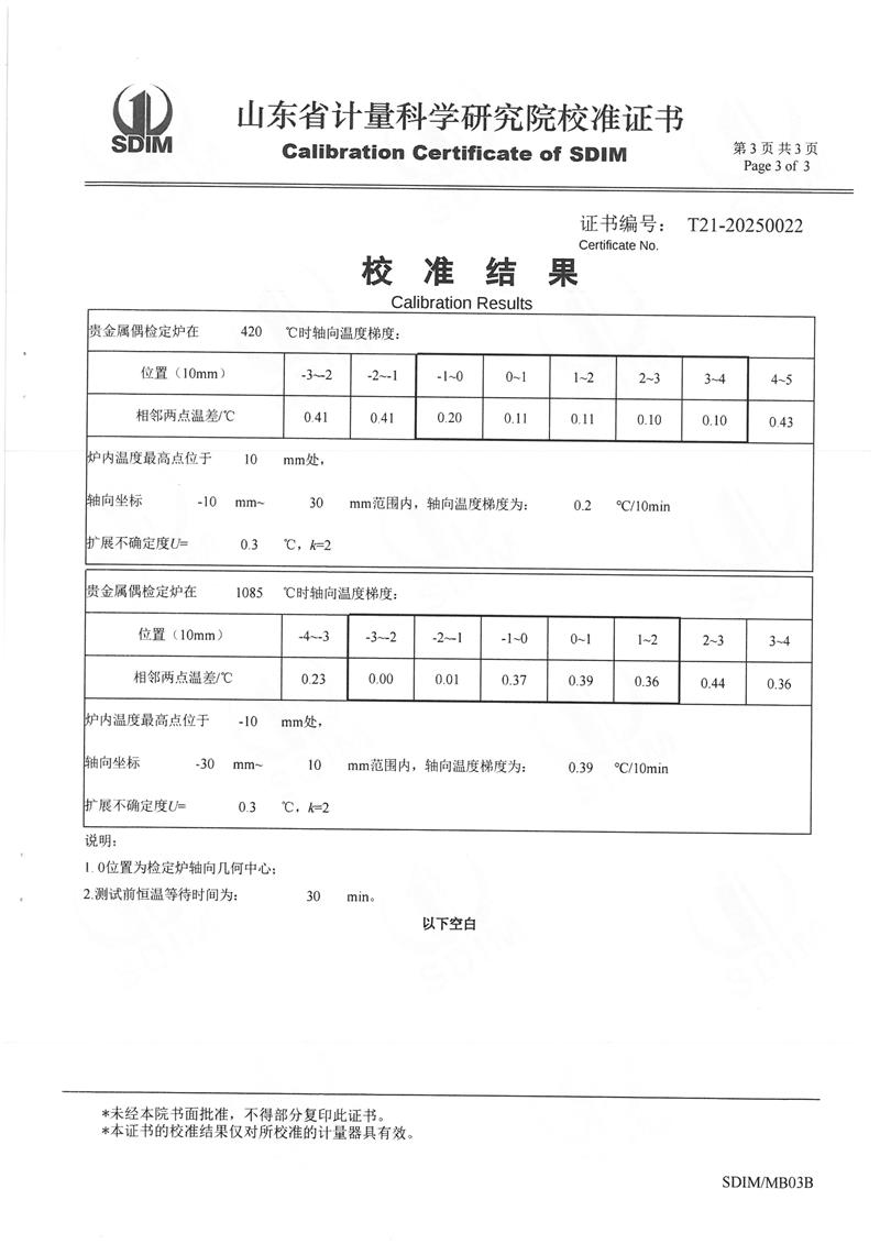 | 上一條:表面溫度計(jì)校準(zhǔn)裝置(室溫+5~400℃)校準(zhǔn)證書(shū) | 下一條:超低溫面源黑體爐(-40-80℃)校準(zhǔn)證書(shū) |