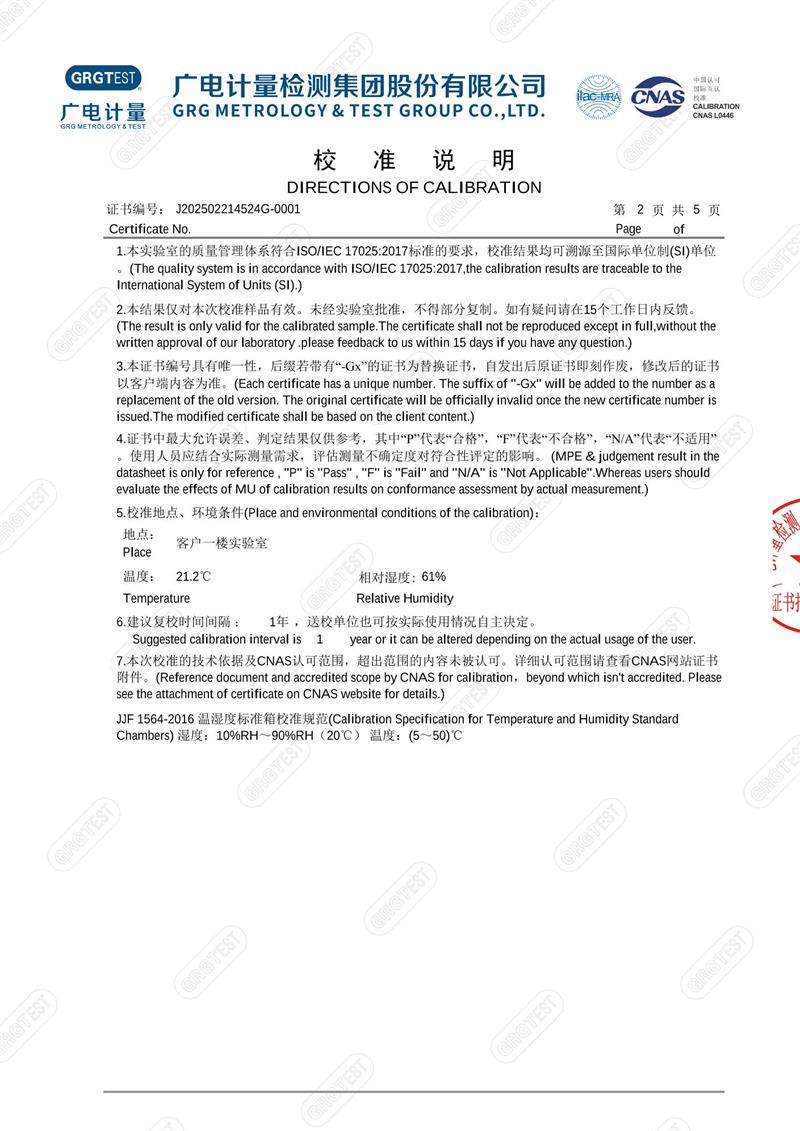 溫濕度檢定箱18274(-5~65℃)校準證書 2025-4-18 本文被閱讀 2710 次