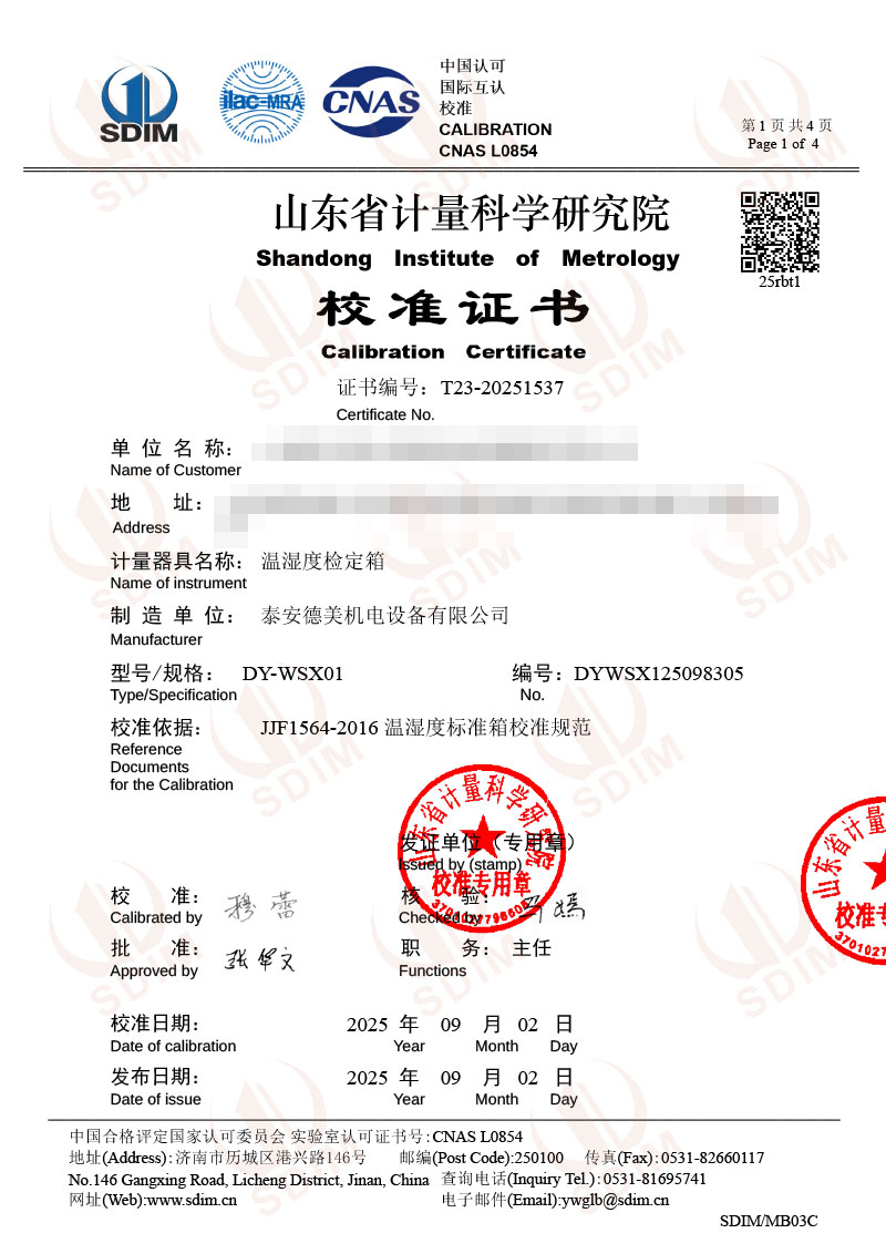 溫濕度檢定箱(-5-65℃)校準(zhǔn)證書(shū) 2025-9-10 本文被閱讀 1316 次