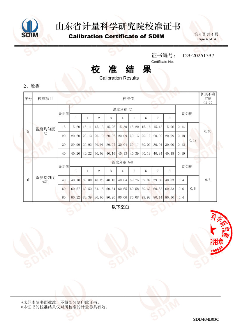 溫濕度檢定箱(-5-65℃)校準(zhǔn)證書(shū)