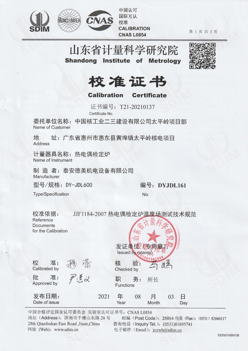 | 上一條:中國核工業(yè)二三建設(shè)有限公司太平嶺項目部-精密恒溫油槽 | 下一條:便攜式干體爐(-30-150℃)校準(zhǔn)證書 |