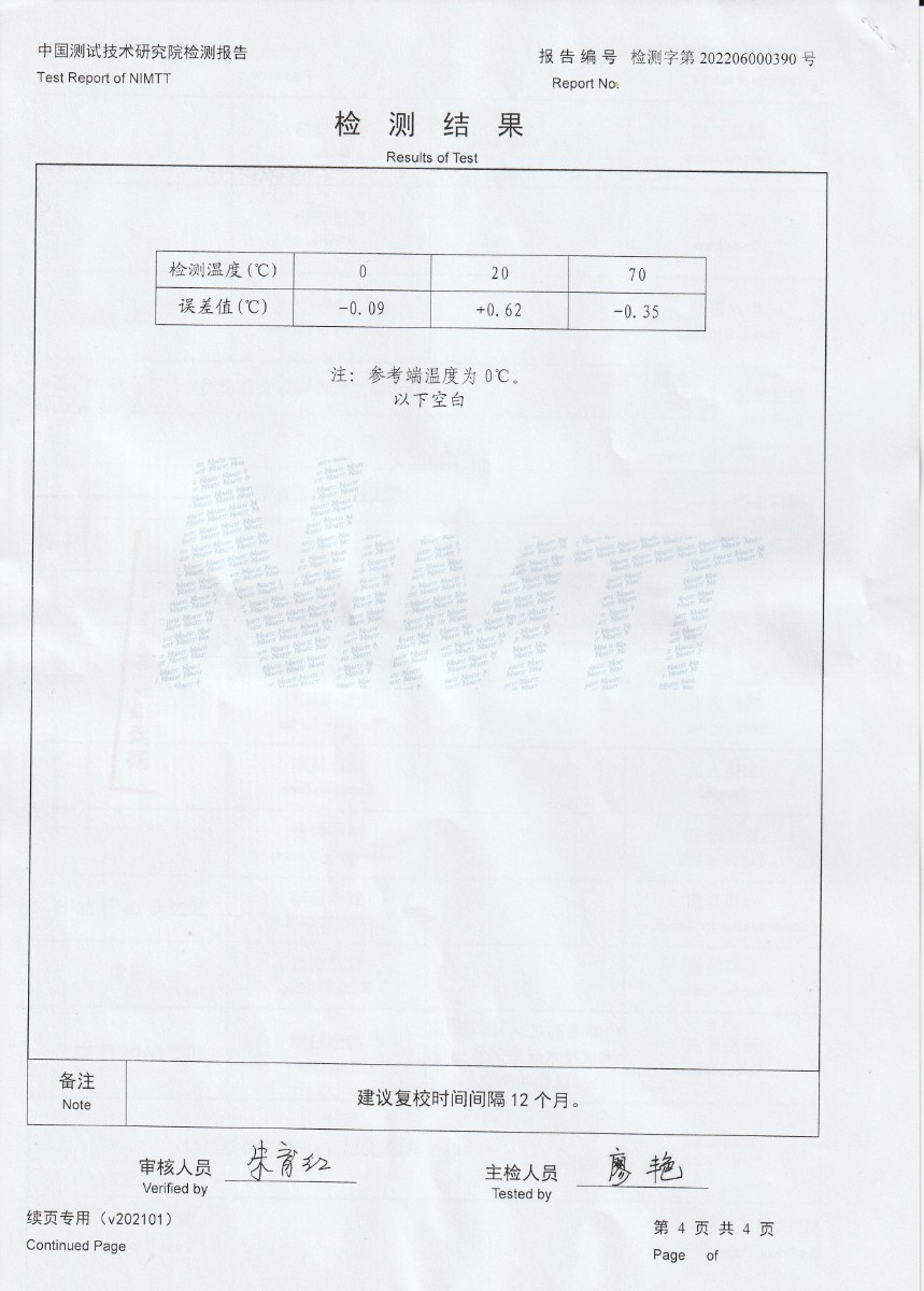 | 上一條:哈爾濱三聯(lián)藥業(yè)股份有限公司-標準通風干濕表 | 下一條:超低溫面源黑體爐(-40-80℃)校準證書 |