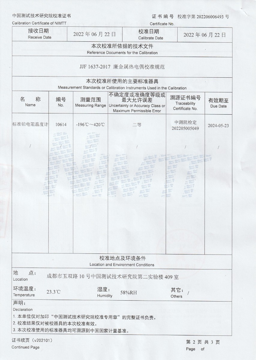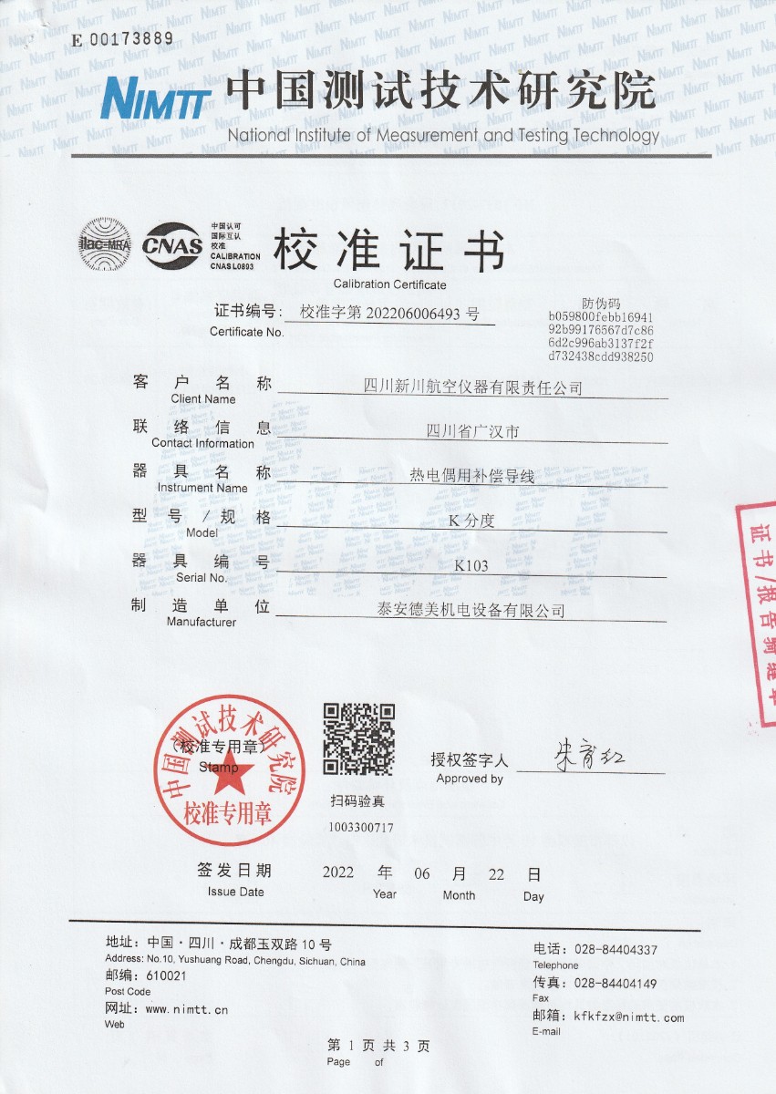 | 上一條:四川新川航空儀器有限責(zé)任公司-S分度補(bǔ)償導(dǎo)線 | 下一條:超低溫面源黑體爐(-40-80℃)校準(zhǔn)證書 |