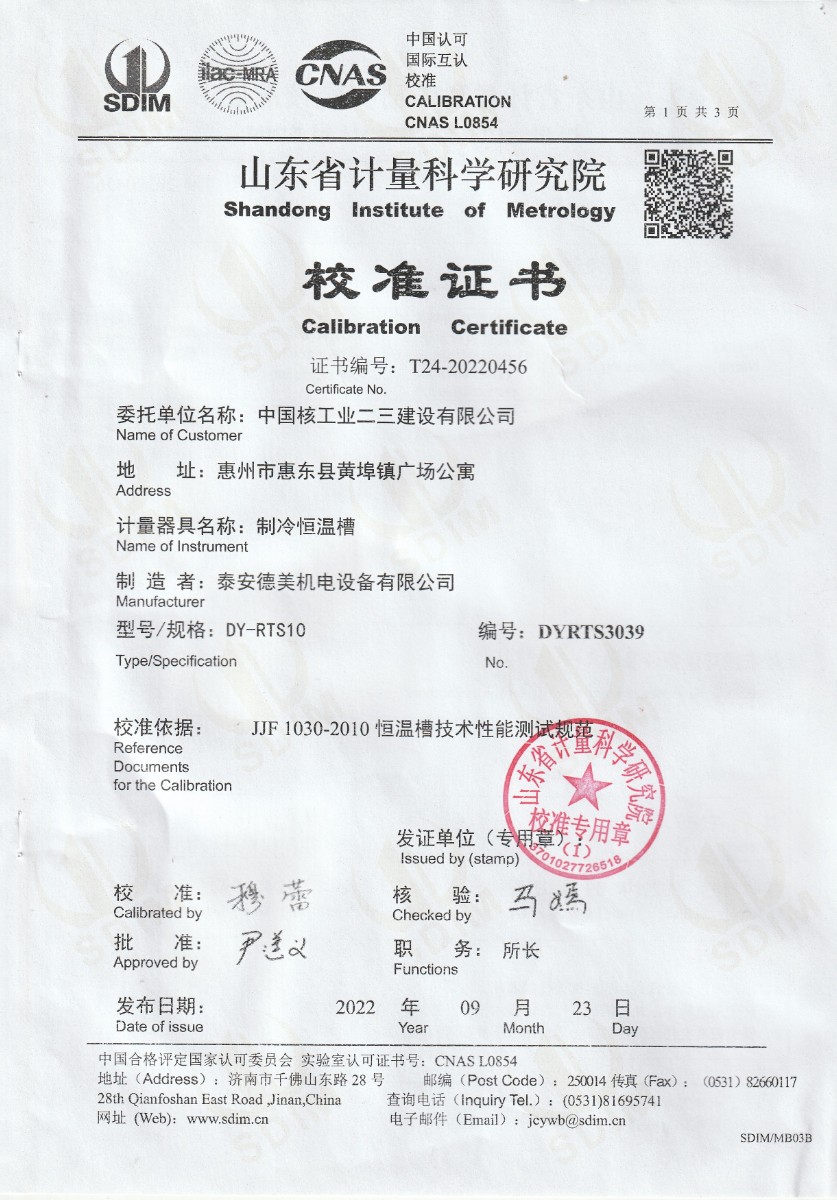 | 上一條:中國核工業(yè)二三建設(shè)有限公司-油槽 | 下一條:便攜式溫濕度檢定箱(-10-60℃)校準(zhǔn)證書 |