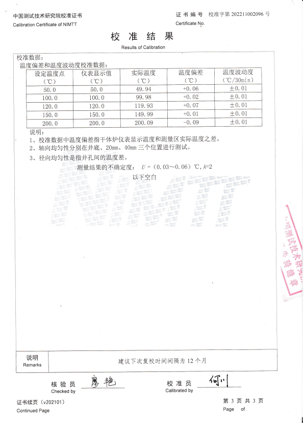 海安橡膠集團股份有限公司 干體爐 校準證書 2022-11-11 本文被閱讀 11535 次