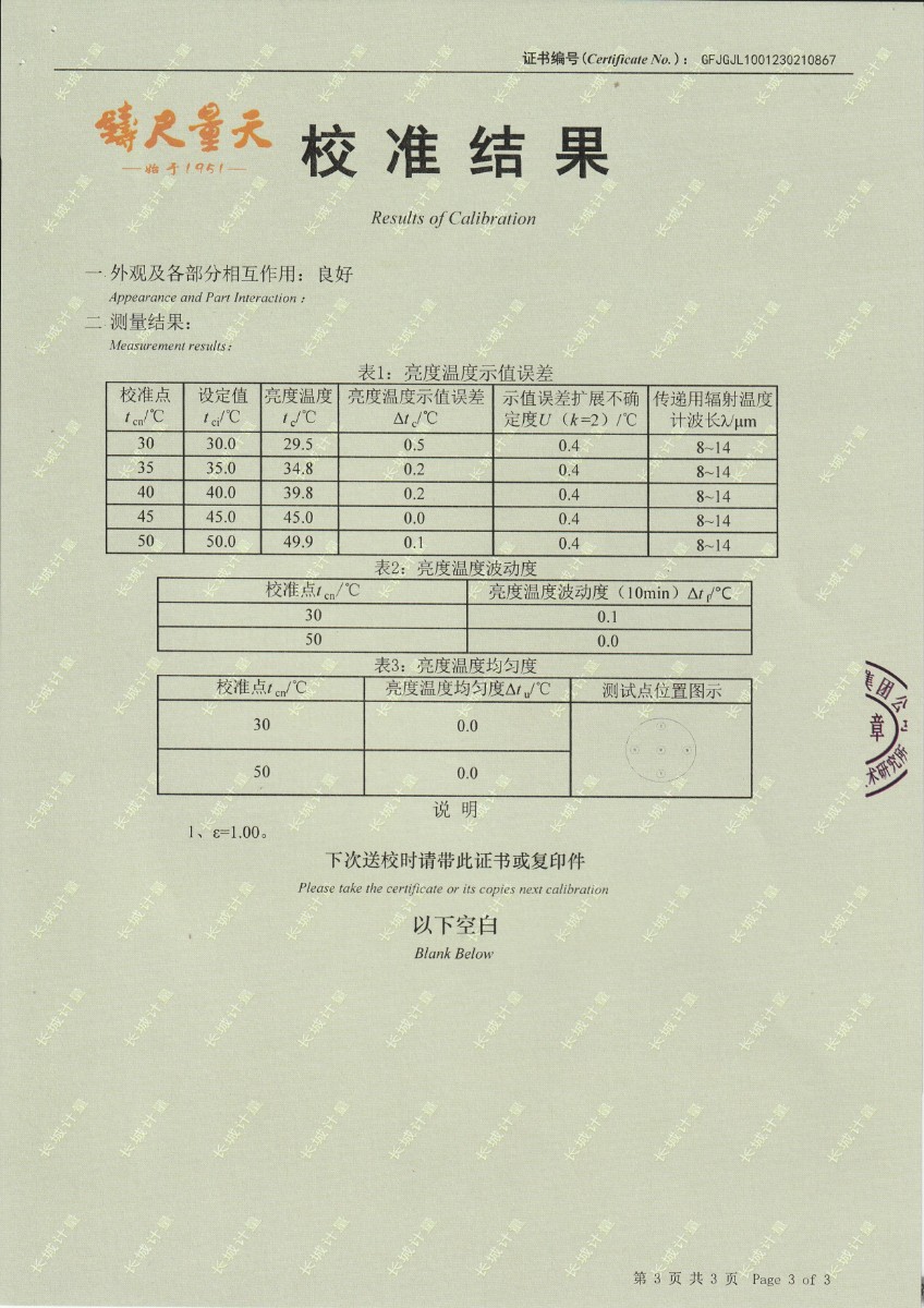 上一條:江蘇省產品質量監(jiān)督檢驗研究院 黑體輻射源 校準證書下一條:超低溫面源黑體爐(-40-80℃)校準證書