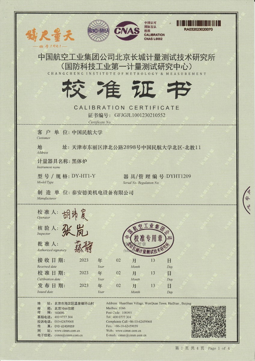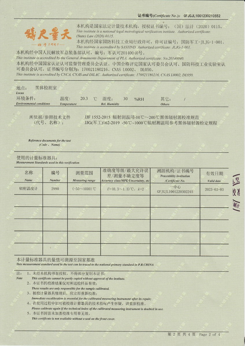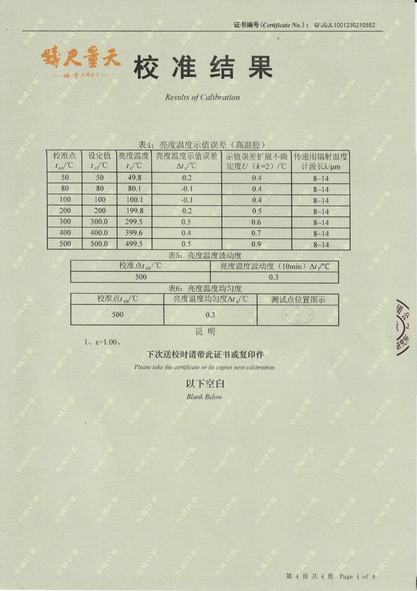 | 上一條:煙臺信泰檢測技術(shù)服務(wù)有限公司 黑體爐 校準(zhǔn)證書 | 下一條:超低溫面源黑體爐(-40-80℃)校準(zhǔn)證書 |