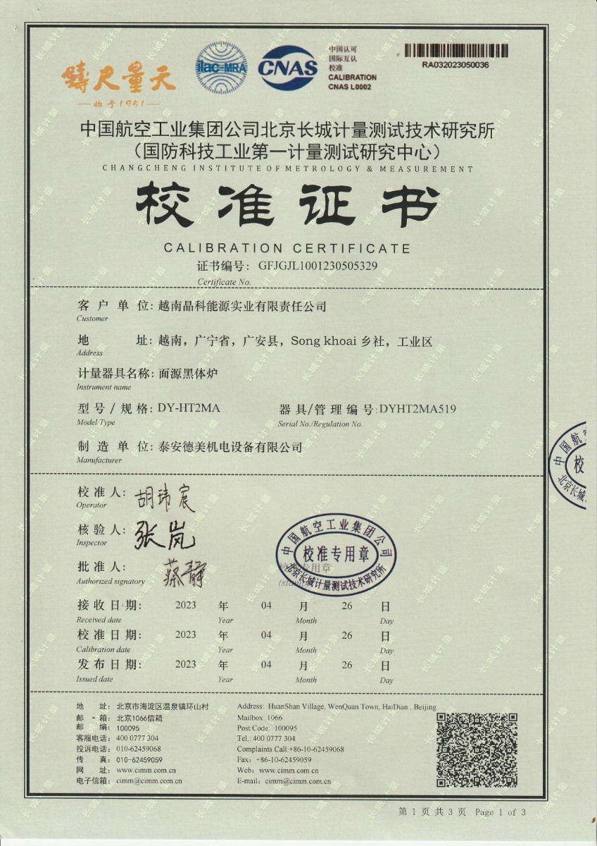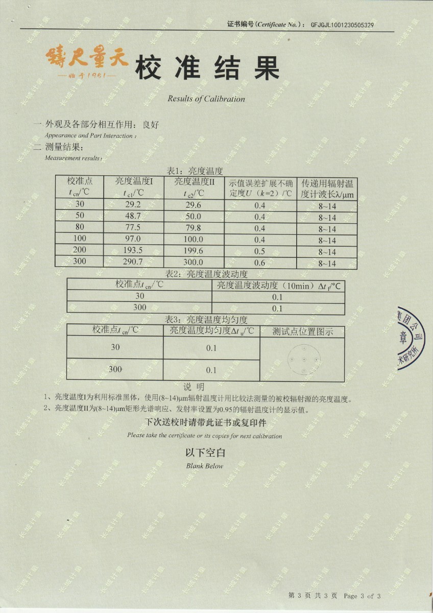 | 上一條:淮安捷泰新能源科技有限公司 黑體輻射源 校準(zhǔn)證書 | 下一條:DY-HT2MF-800大面源黑體爐 |