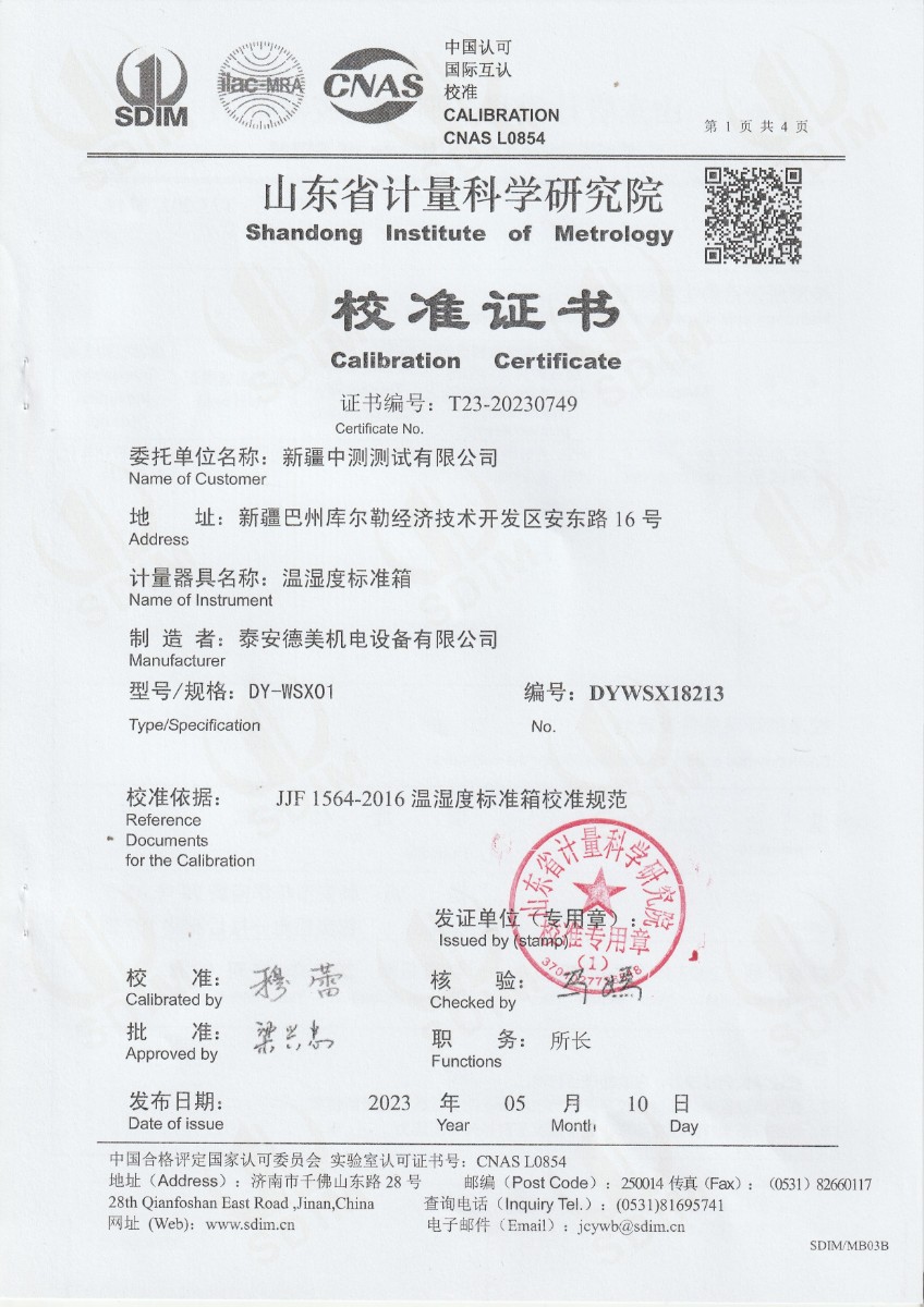 | 上一條:越南晶科能源實(shí)業(yè)有限責(zé)任公司 溫濕度標(biāo)準(zhǔn)箱 校準(zhǔn)證書 | 下一條:便攜式干體爐(-30-150℃)校準(zhǔn)證書 |