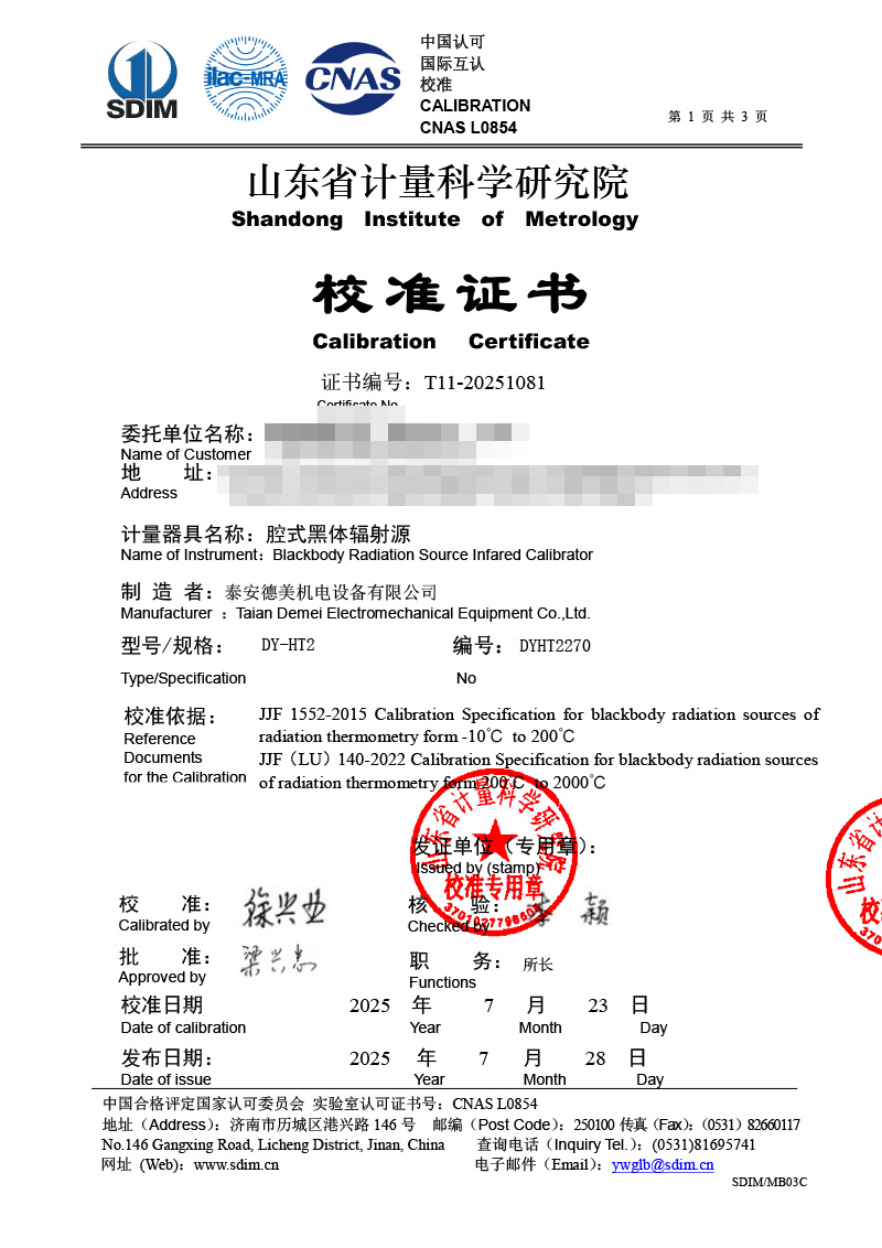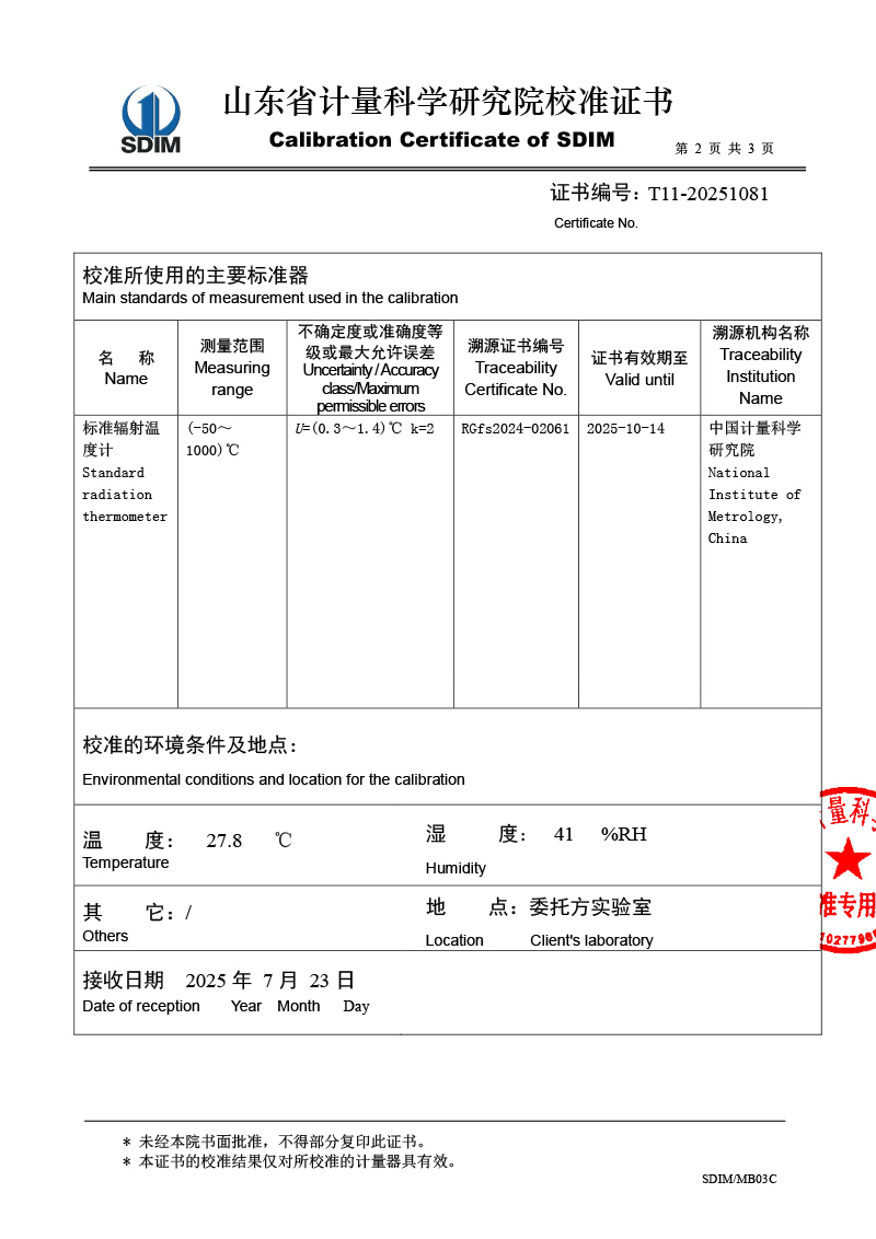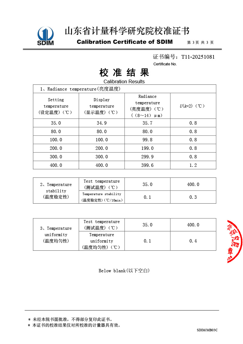 腔式黑體輻射源(室溫+5-400℃)校準(zhǔn)證書 2025-7-29 本文被閱讀 1736 次