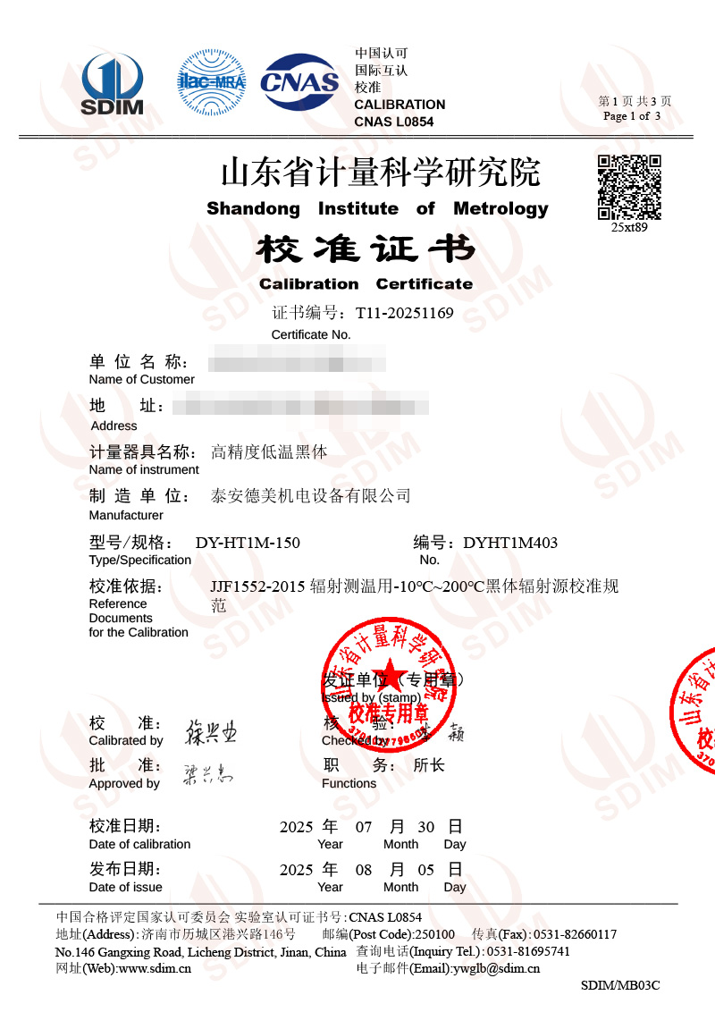 | 上一條:干體式溫度校準(zhǔn)器(40~650℃)校準(zhǔn)證書 | 下一條:便攜式干體爐(-30-150℃)校準(zhǔn)證書 |