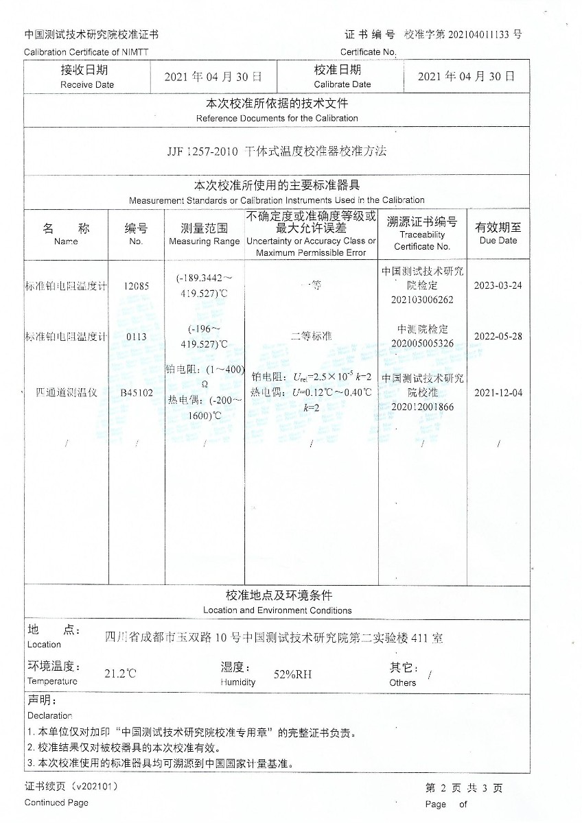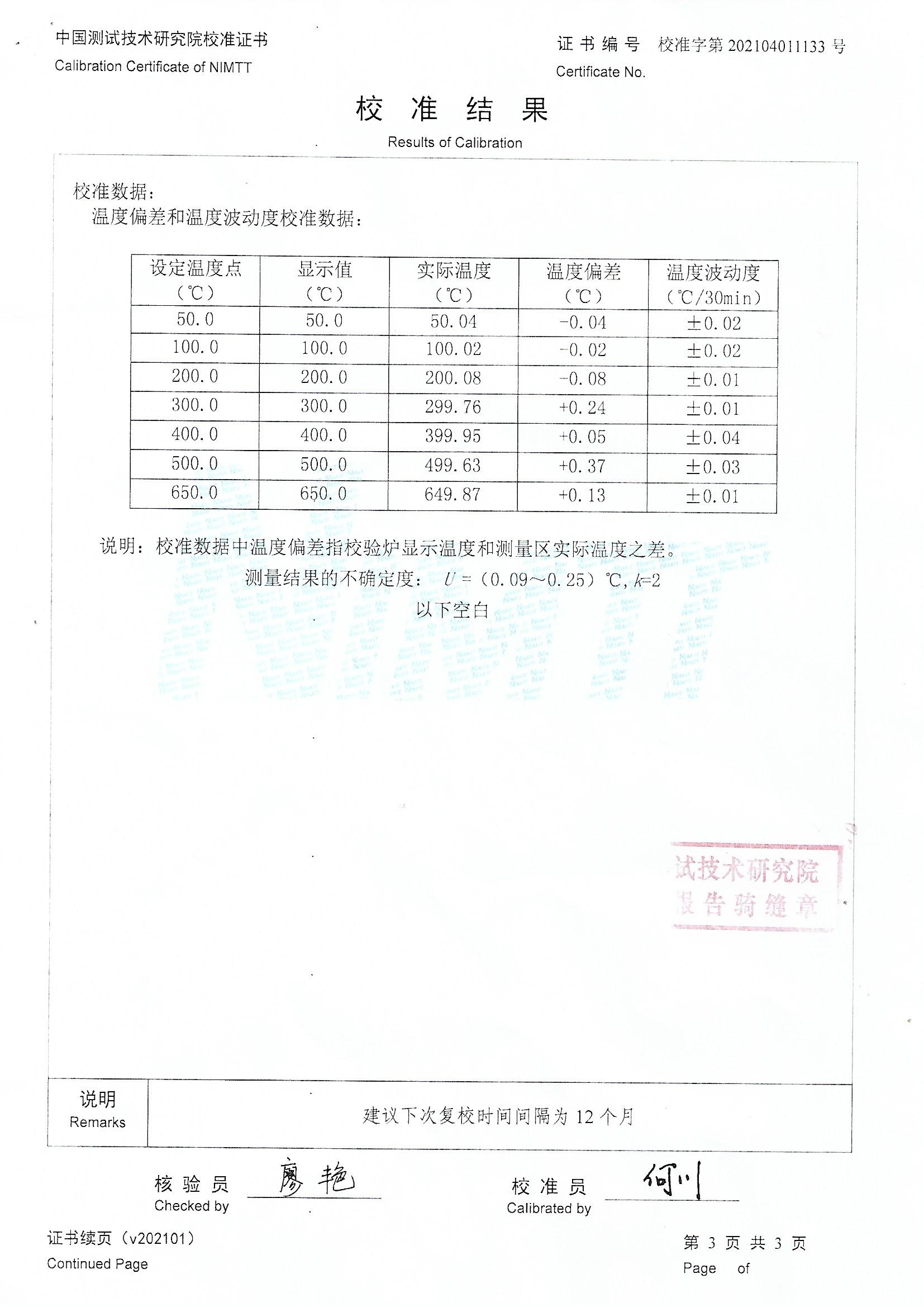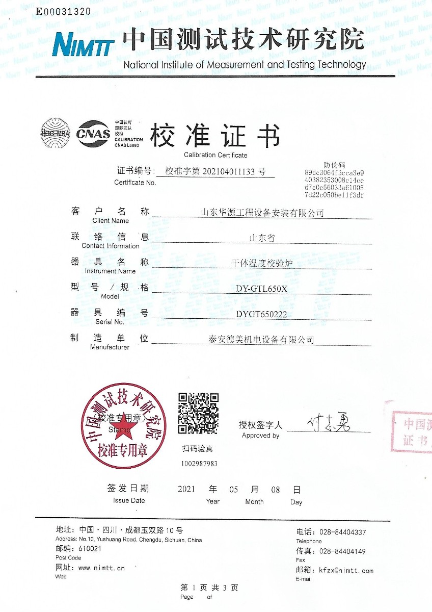 | 上一條:馬鞍山科思化學(xué)有限公司-干體溫度校驗(yàn)爐 | 下一條:便攜式溫濕度檢定箱(-10-60℃)校準(zhǔn)證書 |