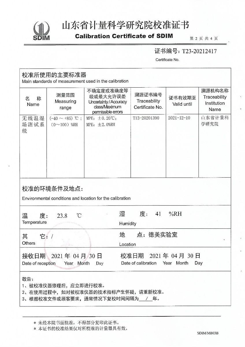 | 上一條:山東華源工程設(shè)備安裝有限公司-干體溫度校驗(yàn)爐 | 下一條:便攜式溫濕度檢定箱(-10-60℃)校準(zhǔn)證書 |