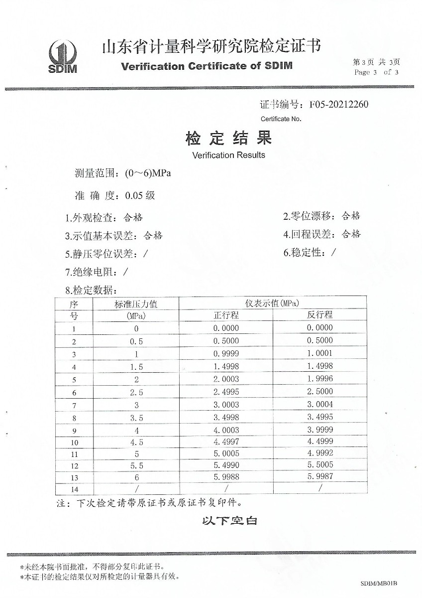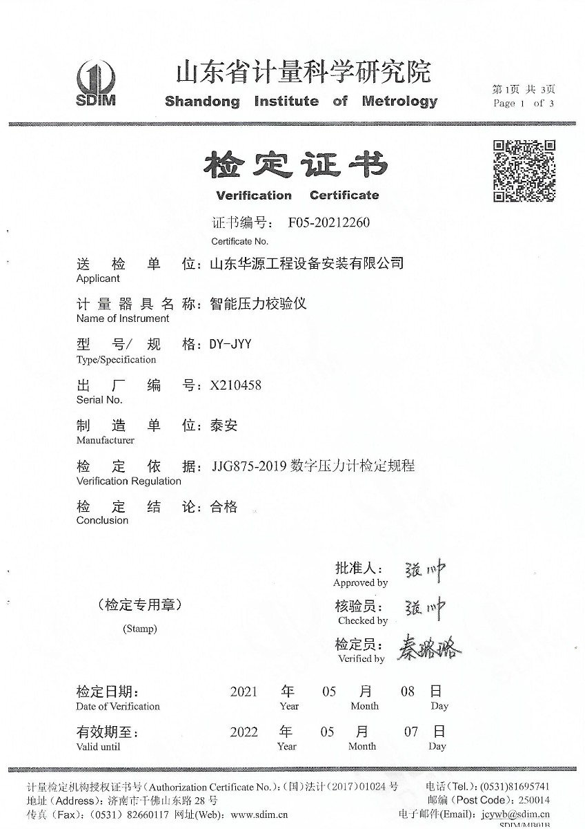 | 上一條:山東華源工程設(shè)備安裝有限公司-智能壓力校驗(yàn)儀X210457 | 下一條:便攜式干體爐(-30-150℃)校準(zhǔn)證書 |