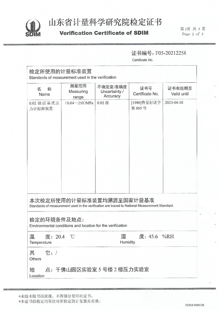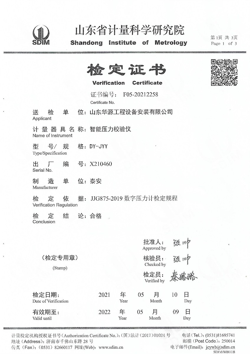 | 上一條:山東華源工程設(shè)備安裝有限公司-智能壓力校驗儀X210459 | 下一條:便攜式干體爐(-30-150℃)校準證書 |