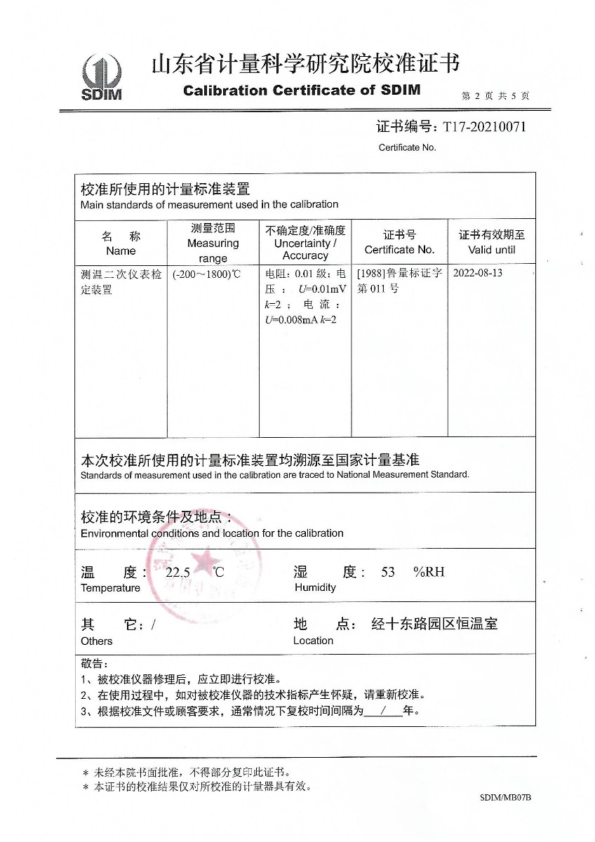 | 上一條:山東華源工程設(shè)備安裝有限公司-智能壓力校驗儀X210461 | 下一條:便攜式干體爐(-30-150℃)校準(zhǔn)證書 |