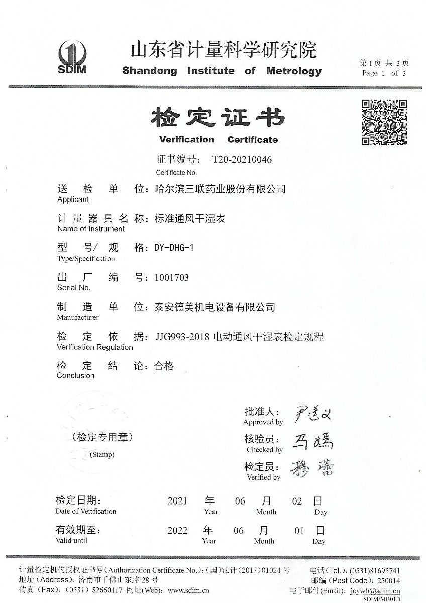 哈爾濱三聯(lián)藥業(yè)股份有限公司-標準通風干濕表 2021-6-5 本文被閱讀 14792 次