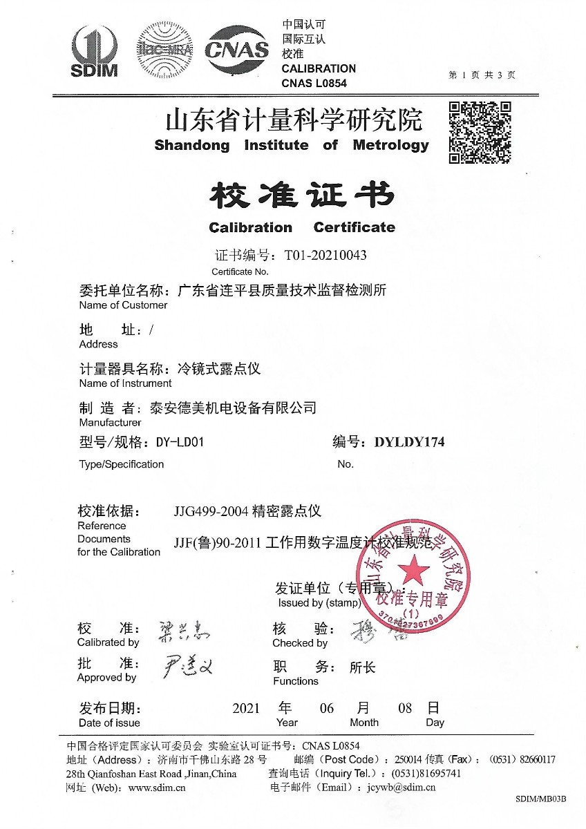 | 上一條:蘇州容啟傳感器科技有限公司-黑體爐 | 下一條:便攜式干體爐(-30-150℃)校準證書 |